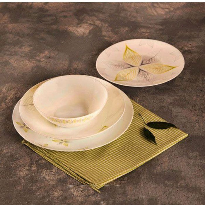 .بشقاب تخت 255mm, .بشقاب گود 220mm, .پیش دستی 190mm, .دیس mm260*310, .کاسه سالاد 250mm h88mm, .کاسه ماست خوری 140*150mm h52mm, .نمک پاش 45mm