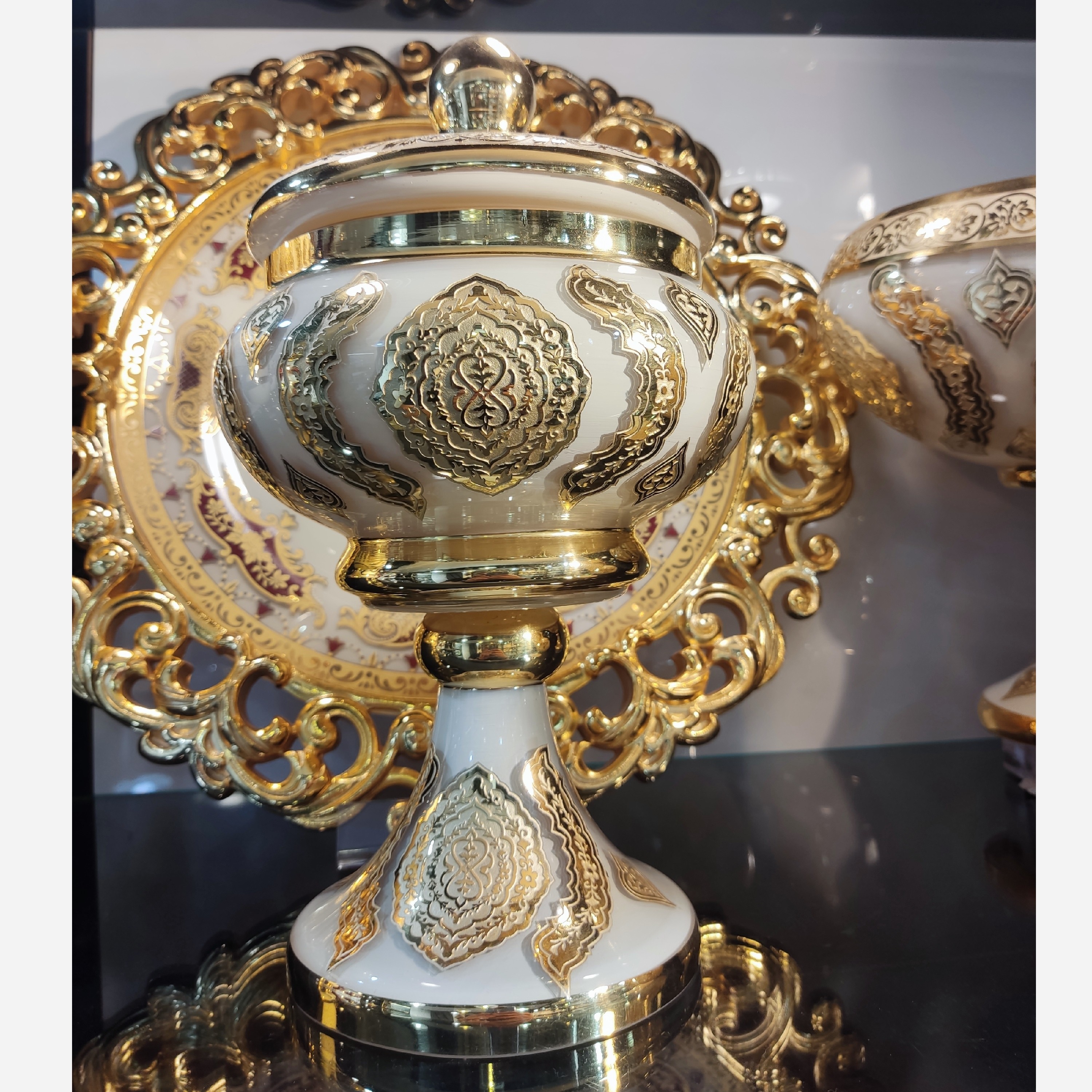 شکلات خوری کریستال رنگ کرم طلاکوب پایدار وارداتی ترک مبلمونسرا مدل 296077