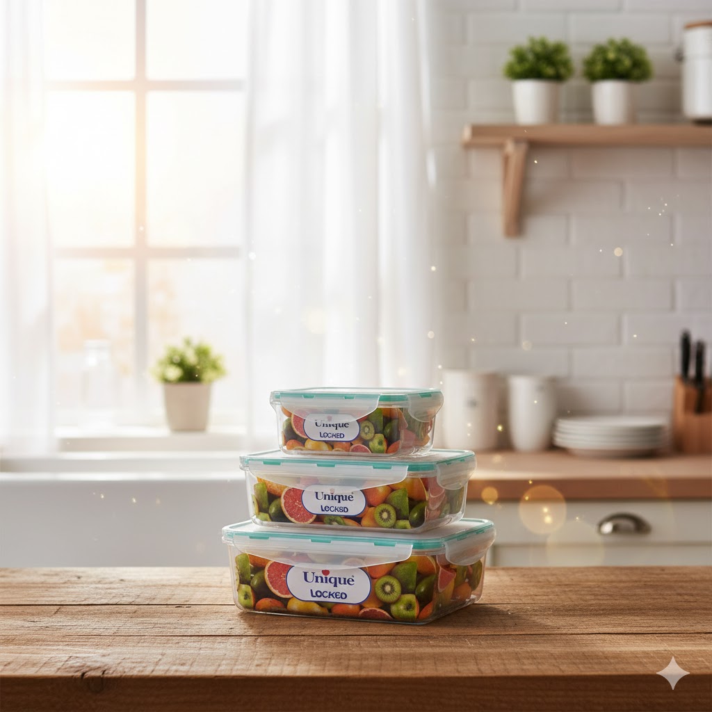 ست ظروف غذا فریزری سه سایز یونیک کد 2857 مبلمونسرا مدل 290381