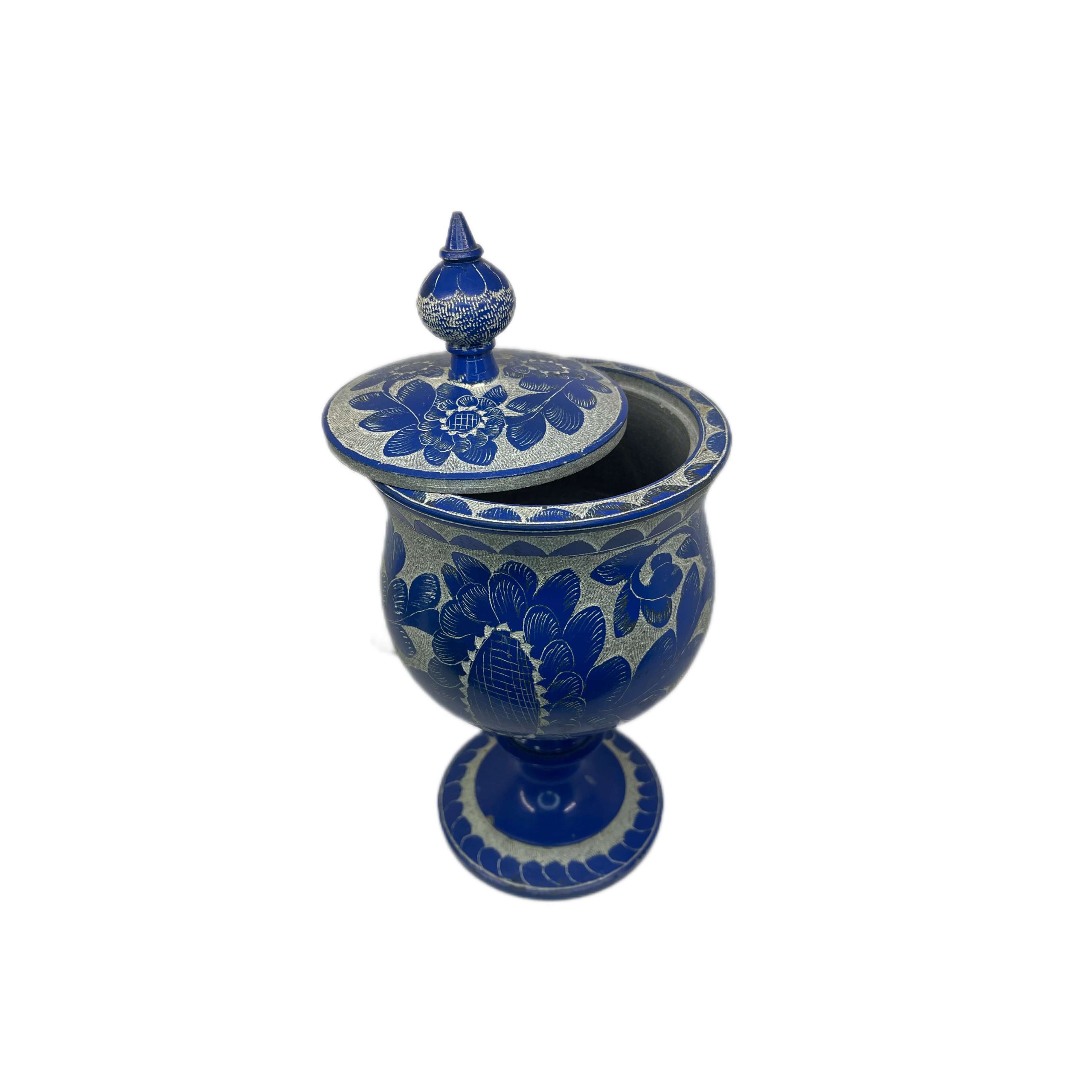 شکلات خوری سنگی قلم زنی شده پایه دار قلم زنی روی سنگ صابون یکی از هنرهای دستی محبوب است که در آن از یک قلم با انتهای نازک و تیز برای نقش کردن روی سنگ صابون استفاده میشود. این هنر از قدیمیترین هنرهای دستی شناخته شده است و به عنوان یک هنر تزئینی و دکوری در بسیاری از کشورها به کار میرود. برای قلم زنی روی سنگ صابون، بهتر است از سنگ صابون نرم و مناسب استفاده شود. همچنین، برای نقش کردن روی سنگ، معمولاً از الگوها و طرحهایی که روی کاغذ رسم شدهاند، استفاده میشود. این الگوها را میتوان با قلم روی سنگ رسم کرد و سپس با قلم بر روی سنگ، طرح و الگو را اجرا کرد.ظروف دکوری سنگی از سنگهای مختلفی مانند سنگ آهک، سنگ مرمر، سنگ صابون و سنگ گرانیت ساخته میشوند. این ظروف اغلب به عنوان زینتهای دکوری در منازل، رستورانها، هتلها و سایر مکانهای تجاری مورد استفاده قرار میگیرند. ظروف دکوری سنگی به صورت دستساز و یا با استفاده از ماشینآلات تولید می شوند . با توجه به دست ساز بودن محصولات سنگی ، وزن و ابعاد آنها ممکن است اختلاف جزیی داشته باشند.