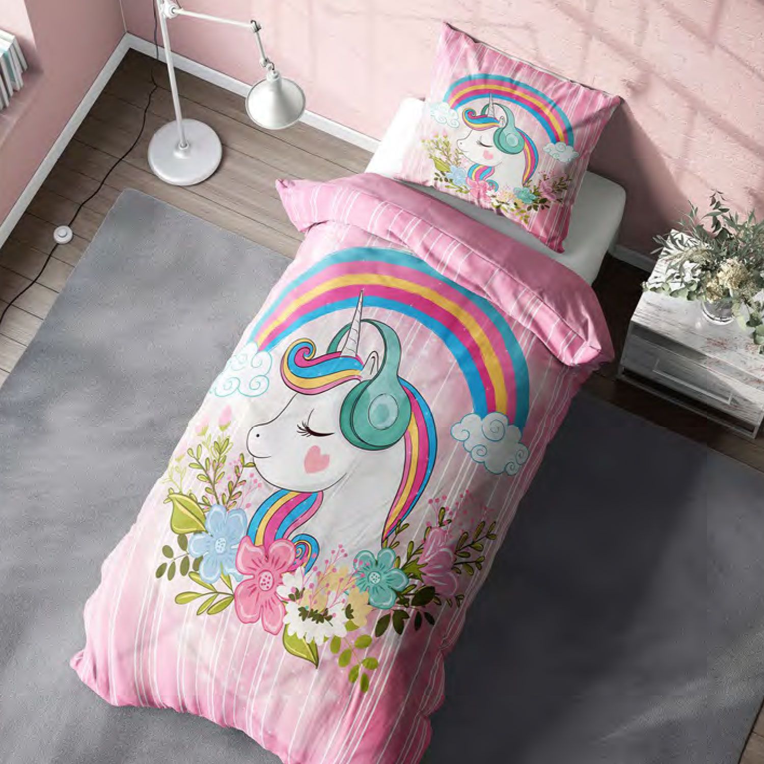 سرویس خواب دخترانه کد M-8950 طرح تک شاخ یکنفره 4 تکه مبلمونسرا مدل 227710