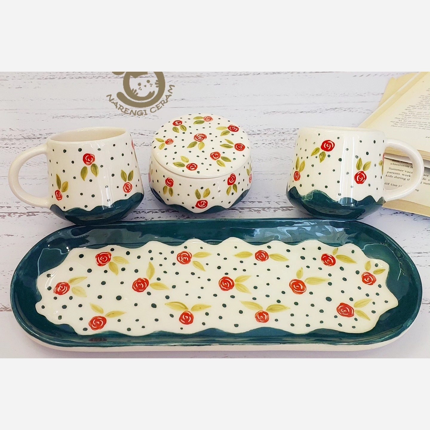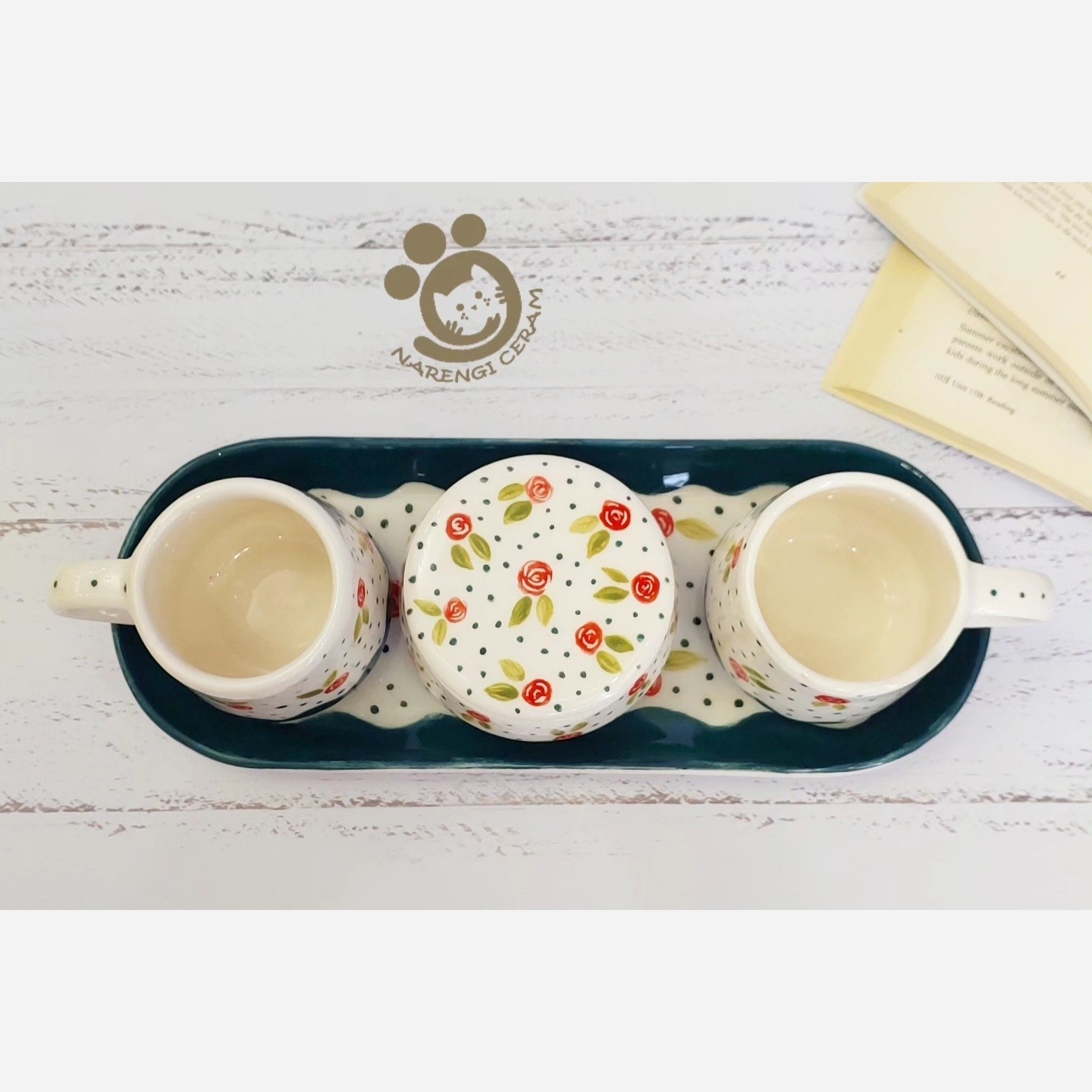 ست چای خوری دو نفره سرامیکی دستساز طرح گل رز مبلمونسرا مدل 279258