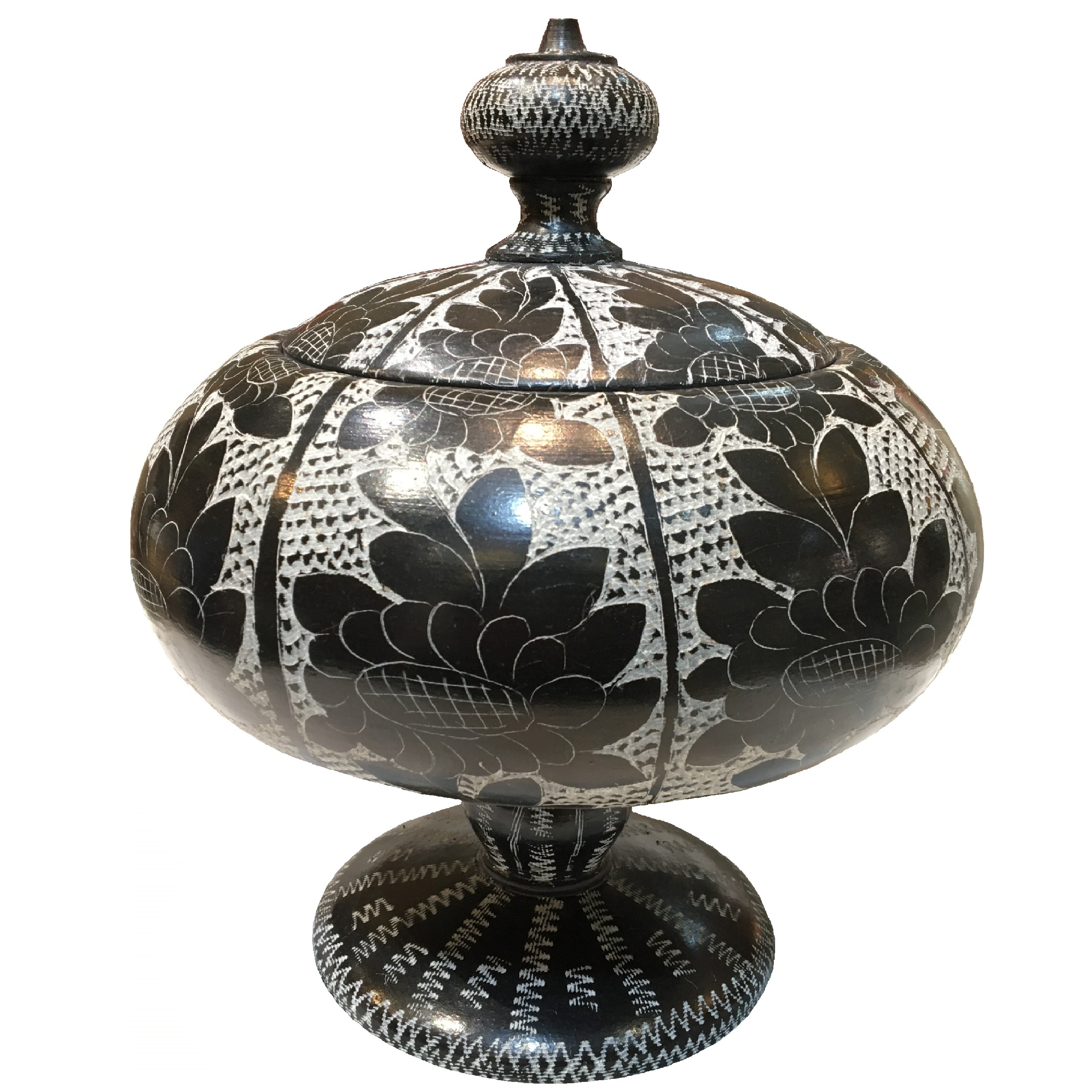 شکلات خوری سنگی مدل ترنج پایه دار سرزمین پهناور ایران پیوسته خواستگاه خلق هنرهای ناب،اصیل و معنوی در عین حال متناسب با زندگی مردم و آداب و رسوم جوامع و اقوام خود بوده است. قلم زنی به طور کلی عبارت است از طراحی نقوش وحکاکی بر روی اشیای مخنلف، به ویژه مس ، طلا ،برنج ،نقره و سنگ است، به عبارت دیگر ایجاد خطوط و نقوش به وسیله چکش قلم بر روی اشیا مختلف و حک انها برروی این اجناس است . سنگ تراشی و قلم زنی روی سنگ صابون یکی از صنایع و فنون کهن ایرانی است که صنعتگران سنگ تراش از گذشته های دور با بهره گیری از بعضی از ابزار و اشیاها ، وسایل اشپزخانه و زینتی، دکوری ،و ظروف قابل استقاده را می ساختند و استادان قلم زن بر روی انها نقش و طراحی می انداختند و روی سنگ سرپانتین حکاکی میکردند.