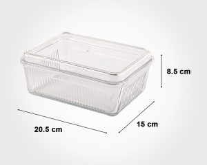 توضیحات درباره ی محصول ظرف شیشه ای 1.1 لیتر درب اکرولیک لیمون کد 2260 ظرفی شیک و کاربردی برای آشپزخانه مدرن شما این ظرف شیشهای با طراحی مینیمال و درب اکرولیک شفاف، بهترین انتخاب برای نگهداری انواع مواد غذایی خشک، مایعات و حتی مواد غذایی در یخچال است. مشخصات: ظرفیت مناسب: با ظرفیت 1.1 لیتر، این ظرف گنجایش کافی برای نگهداری مقدار قابل توجهی از مواد غذایی را دارد. ابعاد ایدهآل: با طول 20.5 سانتیمتر، عرض 15 سانتیمتر و ارتفاع 8.5 سانتیمتر، این ظرف ابعاد مناسبی دارد و به راحتی در کابینت جای میگیرد. درب اکرولیک شفاف: درب اکرولیک شفاف این ظرف، به شما امکان میدهد تا به راحتی محتویات داخل ظرف را مشاهده کنید و بدون باز کردن درب، از میزان آن مطلع شوید. جنس باکیفیت: این ظرف از شیشه باکیفیت و مقاوم ساخته شده است که در برابر ضربه، حرارت و بوی بد مقاوم بوده و برای نگهداری مواد غذایی مناسب است. طراحی مینیمال و مدرن: طراحی ساده و مینیمال این ظرف، آن را به یک انتخاب همه کاره تبدیل کرده است که با هر سبک دکوراسیونی هماهنگ میشود. چرا این ظرف شیشهای را انتخاب کنید؟ حفظ تازگی مواد غذایی: درب اکرولیک و جنس باکیفیت شیشه، از نفوذ هوا و رطوبت به داخل ظرف جلوگیری کرده و باعث حفظ تازگی مواد غذایی میشود. ظاهر زیبا و شیک: طراحی مدرن و مینیمال این ظرف، به زیبایی آشپزخانه شما میافزاید. کاربرد آسان: باز و بسته کردن درب این ظرف بسیار آسان است و میتوانید به راحتی به مواد غذایی داخل آن دسترسی داشته باشید. قابل استفاده در یخچال و فریزر: میتوانید از این ظرف برای نگهداری مواد غذایی در یخچال و فریزر استفاده کنید. هدیهای مناسب: این ظرف یک هدیه کاربردی و زیبا برای خانهدارها و افرادی که به آشپزی اهمیت میدهند، است. با این ظرف شیشهای، آشپزخانه خود را مرتب و زیبا کنید. ویژگیهای برجسته: مناسب برای انواع مواد غذایی: این ظرف برای نگهداری انواع مواد غذایی خشک، مایعات، ترشیجات و حتی مواد غذایی در یخچال مناسب است. قابل شستشو در ماشین ظرفشویی: تمیز کردن این ظرف بسیار آسان است و میتوانید آن را در ماشین ظرفشویی قرار دهید. ضد لک و بو: سطح صاف و صیقلی شیشه، از چسبیدن مواد غذایی و ایجاد لک جلوگیری میکند.