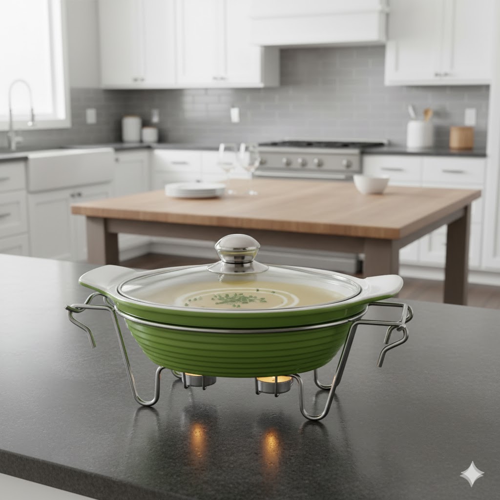 سوفله خوری بیضی متوسط یونیک کد 8524 ظروف سوفله خوری در ابتدا برای سرو نوعی کیک به نام سوفله استفاده می شد. این نوع کیک نیاز داشت تا در هنگام سرو گرم باشد تا بتواند پف خود را حفظ کند. به همین دلیل امروزه به ظروفی که دارای وارمر در زیر غذا هستند سوفله خوری می گویند. این ظروف مناسب برای سرو انواع سوپ، آش، خوراک هایی از قبیل کباب، جوجه، مرغ و ماهی هستند. به خصوص در مهمانی هایی که نیاز دارید مدتی قبل از حضور مهمانان در سر میز ظرف ها و غذا ها به طور کامل چیده شوند؛ این وقفه میتواند باعث سرد شدن و به اصطلاح از دهن افتادن غذای شما شود. با وجود جای مخصوص شمع در زیر سوفله خوری و قرار دادن یک شمع کوچک در زیر غذا خیالتان از بابت گرم ماندن غذا راحت است. ظروف سوفله خوری بر اساس کاربرد آنها در اشکال و اندازه های گوناگون تولید میشوند. "سوفله خوری بیضی متوسط یونیک کد 8524" ساخته شده از دو قسمت مجزا است. ظرف پیرکس فرانسه داخلی برای قرار دادن غذا و بدنه و درب از جنس چینی 10-80 درجه یک. مناسب برای سرو انواع غذا به صورت سرد و گرم. زیر این ظرف دو جا شمعی تعبیه شده و گرمای کافی برای گرم نگه داشتن انواع غذا ها را تامین میکند.دسته های زیبای این محصول ظاهری بسیار لوکس و مناسب جشن ها و تشریفات خاص شما دارد. درباره برند یونیک یونیک برندی شناخته شده در زمینه لوازم آشپزخانه در ایران می باشد که در چندین سال اخیر مورد استقبال خانواده های ایرانی قرار گرفته است .این شرکت که محصولات خود را تحت لیسانس کشور انگلیس در چین تولید میکند ، سعی کرده است تا با طراحی مدرن و مورد نیاز خانواده ها و با بهترین کیفیت ممکن ، تولیدات خود را روانه بازار کند . از جمله مهم ترین ویژگی شرکت یونیک ، قیمت مناسب در مقایسه با برند های کرکماز و زولینگن و … و همچنین خدمات پس از فروش مناسب در ایران اشاره کرد. با توجه به محصولات مشابه داخل بازار، خریداران گرامی حتما به لوگوی شرکت unique بر روی محصول دقت کنند. محصولاتی که زیر برند یونیک ،نام کشور و یا High Quality درج شده است فاقد گارانتی و محصولات شرکتی یونیک نمی باشند.