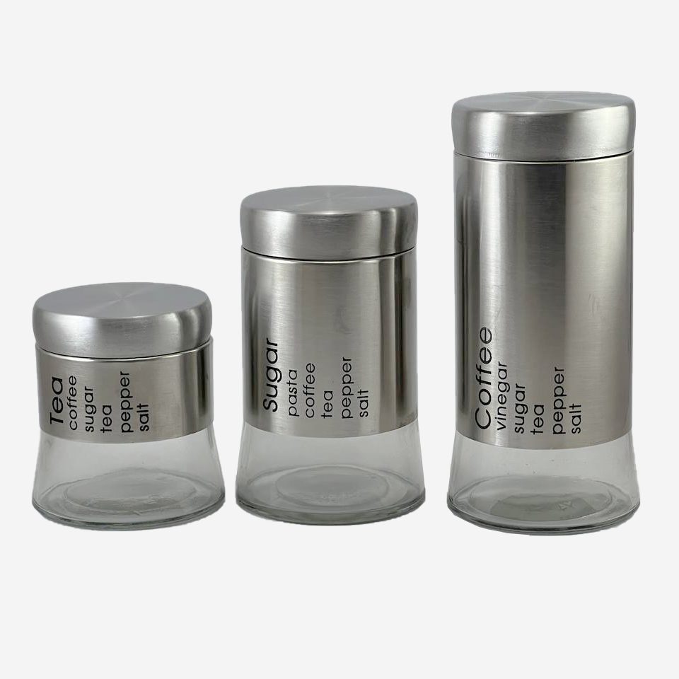سرویس بانکه 3سایز استیل کف پهن ایوو "سرویس بانکه 3سایز استیل کف پهن ایوو" ظروفی هستند مناسب برای نگهداری انواع مواد غذایی از جمله حبوبات، ماکارونی و پاستا، مربا و مارمالاد، برنج و ... . جنس بدنه این بانکه ها از شیشه و استیل ضد زنگ است. همه این ظروف دارای درب های پیچی هستند تا بعد از بسته شدن از بیرون نریختن مواد داخل آن اطمینان پیدا کنید. طراحی این سرویس بسیار ساده و شیک بوده و با هر آشپزخانه ای ست میشود. ابعاد: 1- قطر 9 سانتی متر و ارتفاع 10 سانتی متر 2- قطر 9 سانتی متر و ارتفاع 16 سانتی متر 3- قطر 9 سانتی متر و ارتفاع 20 سانتی متر