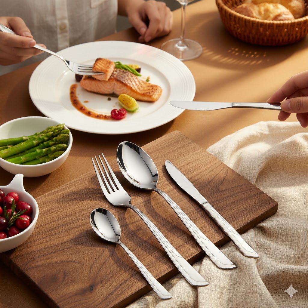 سرویس کیفی 129 پارچه قاشق و چنگال استیل ضخامت 4.5 میل یونیک کد 5724 مبلمونسرا مدل 290389