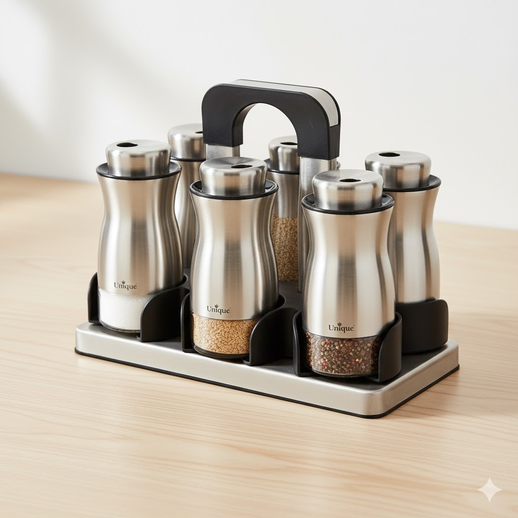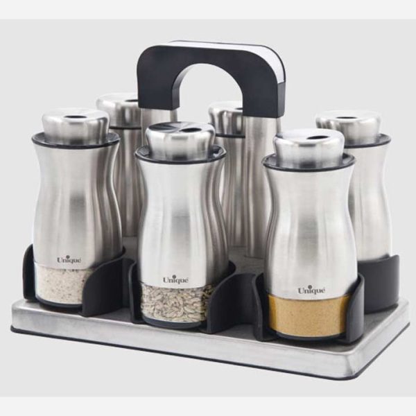 ست ادویه 7 پارچه پایه استیل یونیک کد 2047 مبلمونسرا مدل 291669