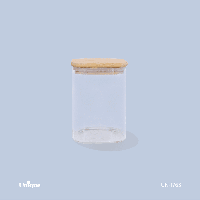 بانکه شیشه ای درب چوبی مربع 13 سانت یونیک کد UN-1763 مبلمونسرا مدل 288472