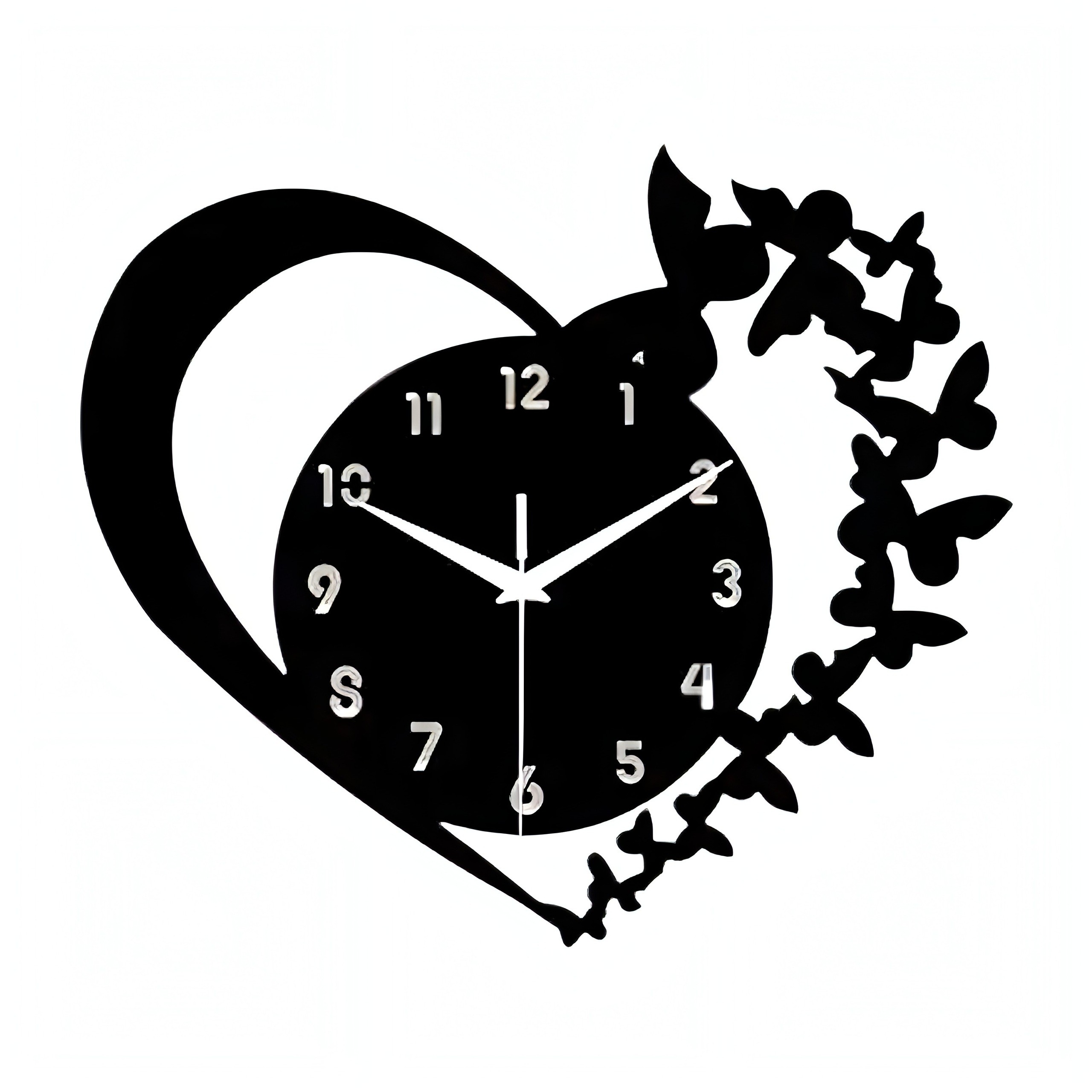 ساعت دیواری گوارتز طرح قلب و پروانه با ضخامت 8 میل با کیفیت
