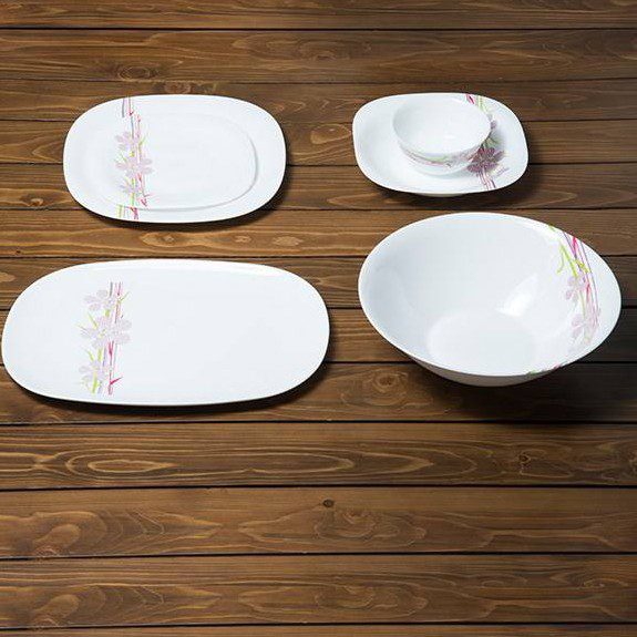 بشقاب برنج خوری 25 سانتی متر, بشقاب خورشت خوری 23 سانتی متر, بشقاب میوه خوری 19 سانتی متر, دیس بیضی 33 سانتی متر, کاسه سالاد خوری 25 سانتی متر, کاسه ماست خوری 12.5 سانتی متر