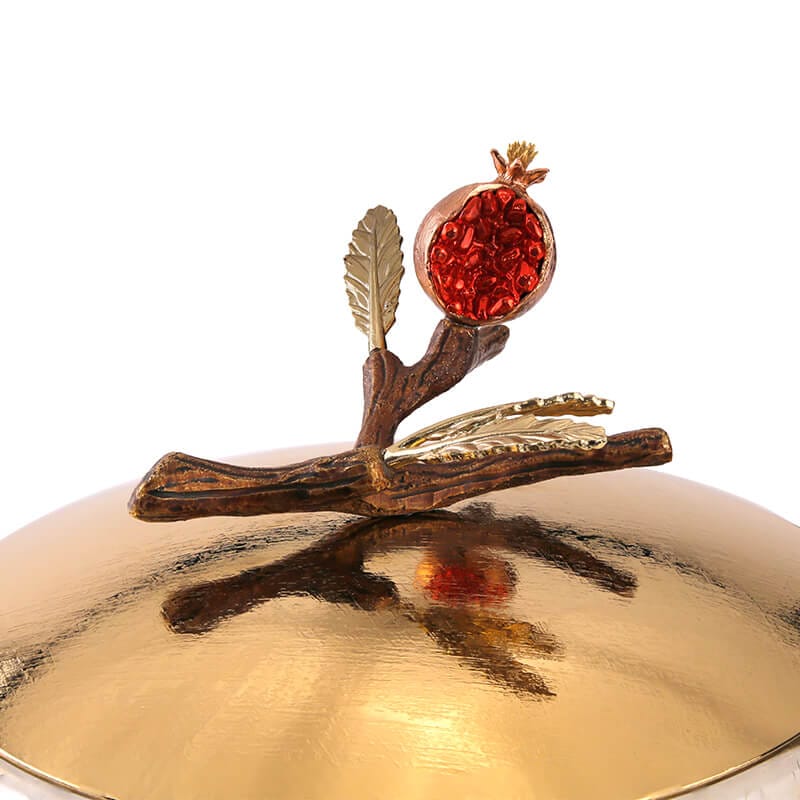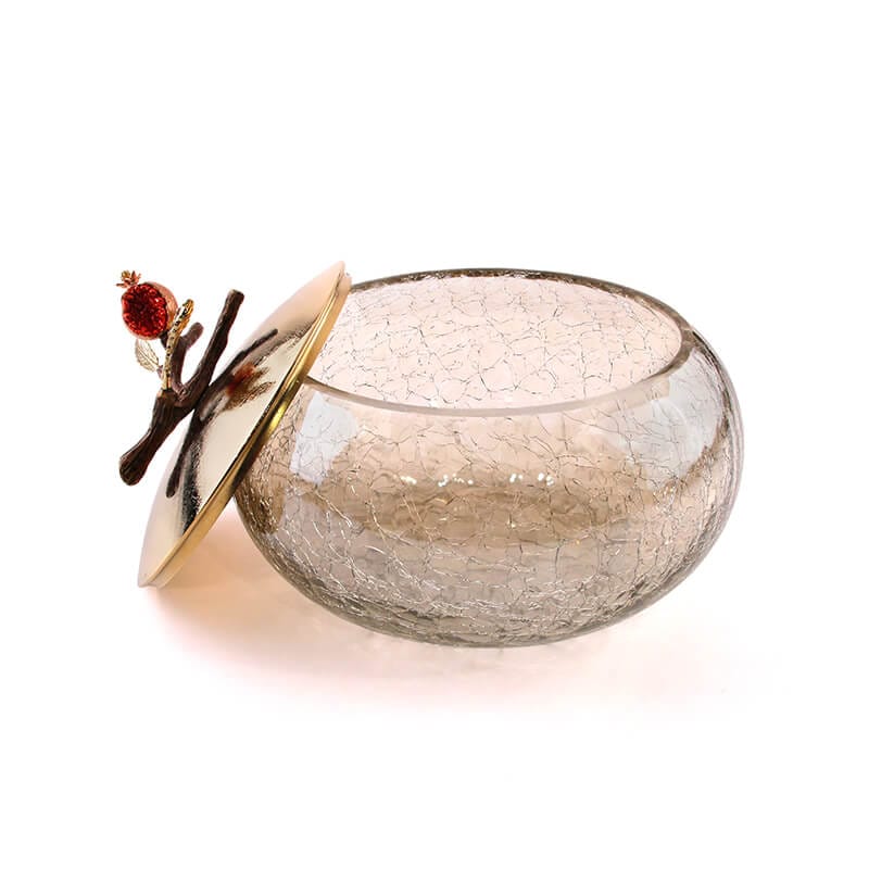 ظرف از جنس شیشه آبگز - درب شاخه و برگ و انار از جنس فلز برنج