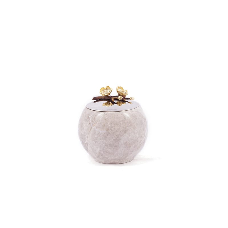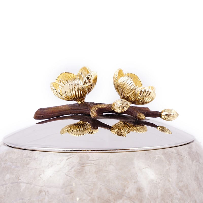 تمام محصولات شرکت ریتون هنر دست می باشد. بر اثر فعالیت های شیمیایی انجام شده روی شاخه، فلز به رنگ مورد نظر تغییر رنگ می دهد. رنگ کاملا به صورت ثابت باقی می ماند و هیچ گونه تغییر رنگی نمی دهد، این عمل که اصطلاحا به آن پتینه کاری گفته می شود برای تمامی شاخه های به کار رفته در تمامی محصولات انجام شده. همه گل های به کار برده شده در تمام محصولات ریتون آبکاری شده اند و به هیچ عنوان رنگ آنها تغییر نخواهد کرد. درب تمامی محصولات نیز از جنس برنج و آبکاری PVD روی آنها انجام شده است. شکلات خوری - ظرف سنگی دردار B2 مارینا ظرف از جنس سنگ طبیعی می باشد. درب از جنس فلز برنج می باشد. پیج اینستاگرام مجموعه Rhyton از طریق ارتباط با ما در تماس باشید. ابعاد : 14.5*14.5 cm ارتفاع : 15 cm وزن : 1382 g جنس : ظرف سنگ طبیعی - درب فلز برنج رنگ : سنگ خاکستری - درب نقره ای گل طلایی, سنگ قهوه ای طلایی - درب نقره ای شاخه مشکی گل طلایی مشکی