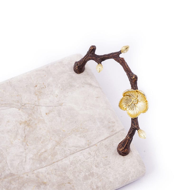 تمام محصولات شرکت ریتون هنر دست می باشد. بر اثر فعالیت های شیمیایی انجام شده روی شاخه، فلز به رنگ مورد نظر تغییر رنگ می دهد. رنگ کاملا به صورت ثابت باقی می ماند و هیچ گونه تغییر رنگی نمی دهد، این عمل که اصطلاحا به آن پتینه کاری گفته می شود برای تمامی شاخه های به کار رفته در تمامی محصولات انجام شده. همه گل های به کار برده شده در تمام محصولات ریتون آبکاری شده اند و به هیچ عنوان رنگ آنها تغییر نخواهد کرد. درب تمامی محصولات نیز از جنس برنج و آبکاری PVD روی آنها انجام شده است. ابعاد : 16*35 جنس : سنگ - فلز برنج رنگ : شاخه قهوه ای طلایی – سنگ خاکستری