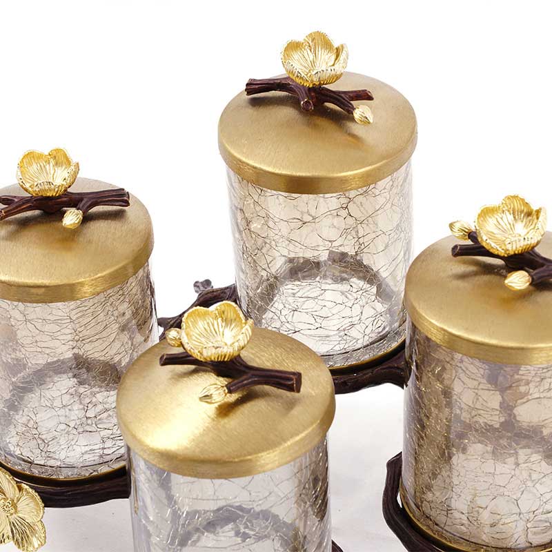ظرف شیشه آبگز - درب، شاخه و گل فلز برنج