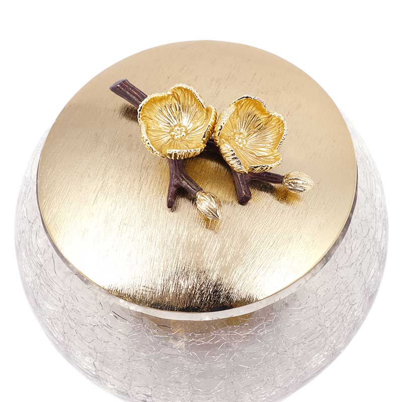 ظرف شیشه آبگز - درب، شاخه و گل فلز برنج