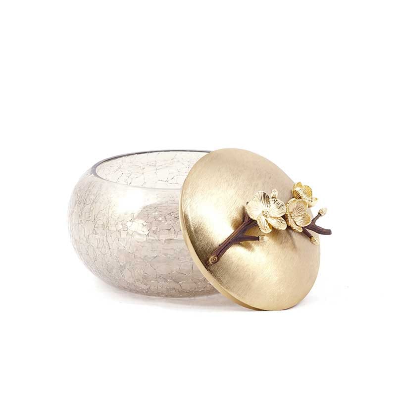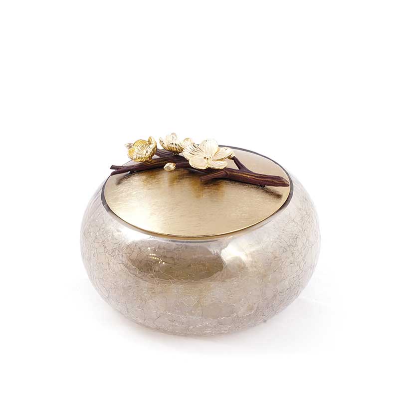 ظرف شیشه آبگز - درب، شاخه و گل فلز برنج