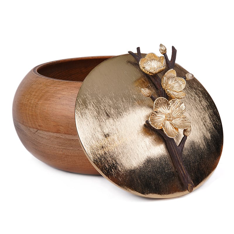 ظرف چوب راش سوپر اکسترا - درب، شاخه و گل فلز برنج