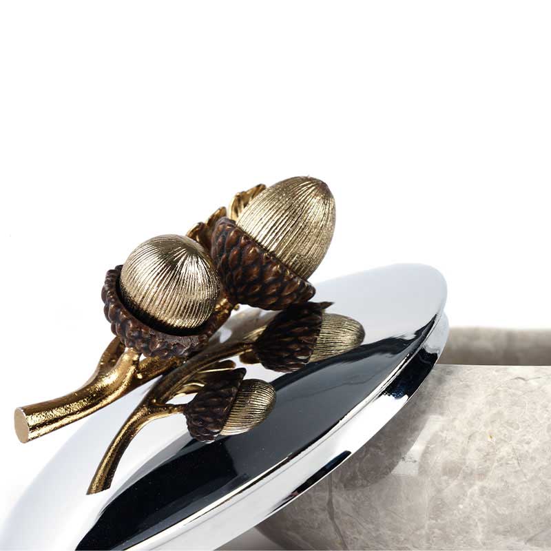شکلات خوری - ظرف سنگی دردار C1 بلوط سنگ خاکستری ظرف سنگ طبیعی پرشین درب فلز برنج ابعاد : 13*13 cm ارتفاع : 9.5 cm وزن : 696 g جنس : جنس ظرف سنگ طبیعی پرشین - جنس درب فلز برنج رنگ : شاخه قهوه ای – سنگ خاکستری – درب نقره ای