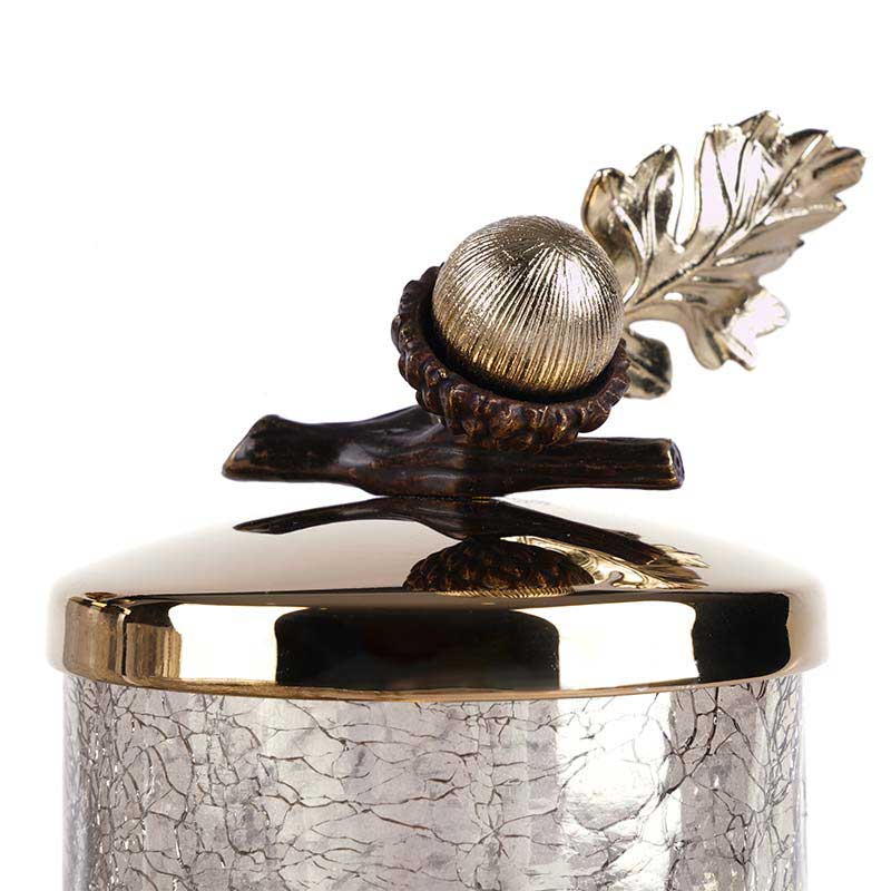 ابعاد : 10*10 ارتفاع : 16 وزن : 809 جنس : شیشه آبگز رنگ : شاخه قهوه ای – شیشه شامپاینی – درب طلایی