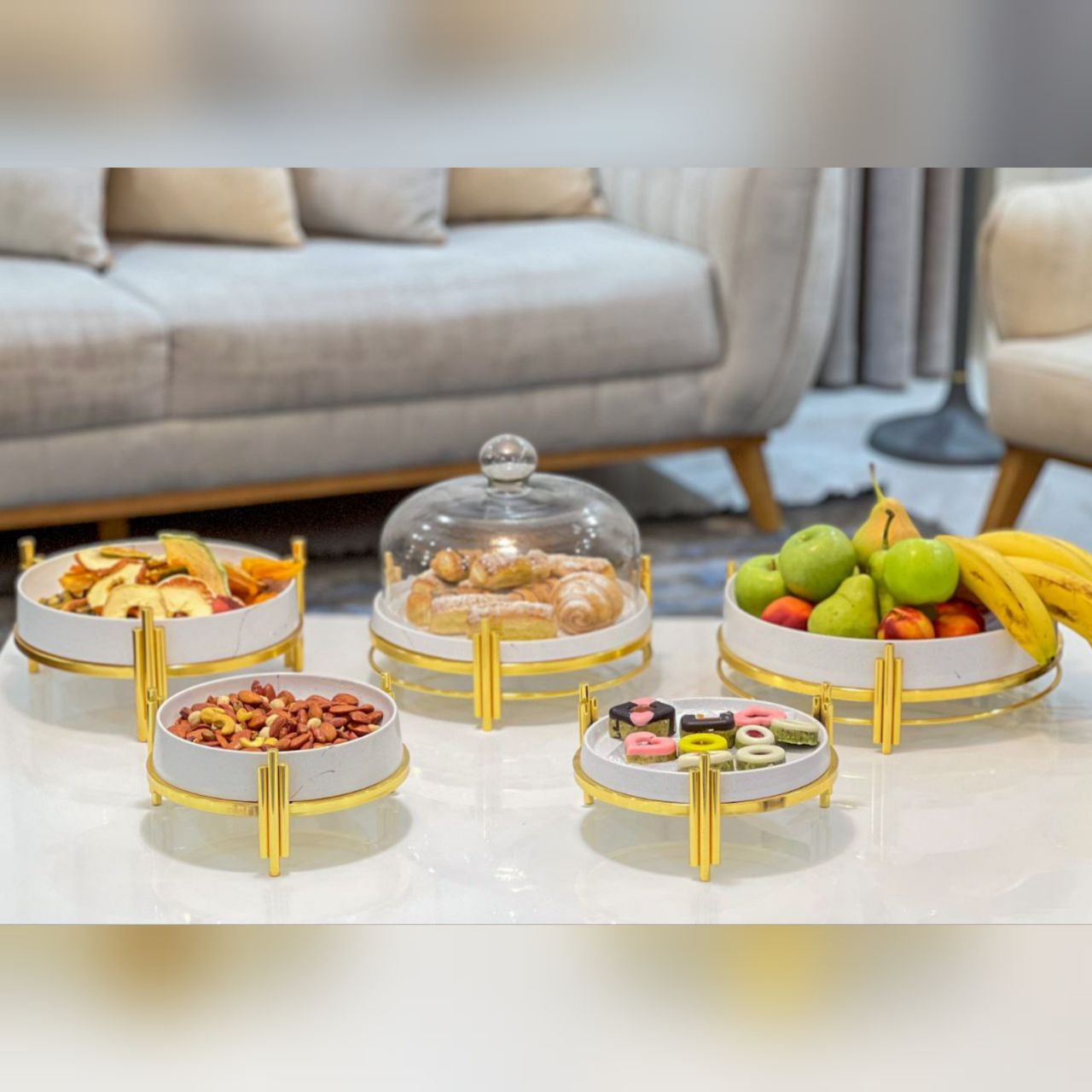 ست پذیرایی سنگی کورین تسمه ای ◉ | ست پذیرایی شامل 5 تکه میوه، آجیل، شکلات، شیرینی خوری و کاپ کیک می باشد ◉