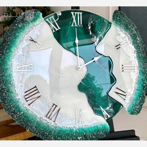 ساعت دیواری رزینی رنگ سبز و کرم هنر دست هدیه خاص مبلمونسرا مدل 236419