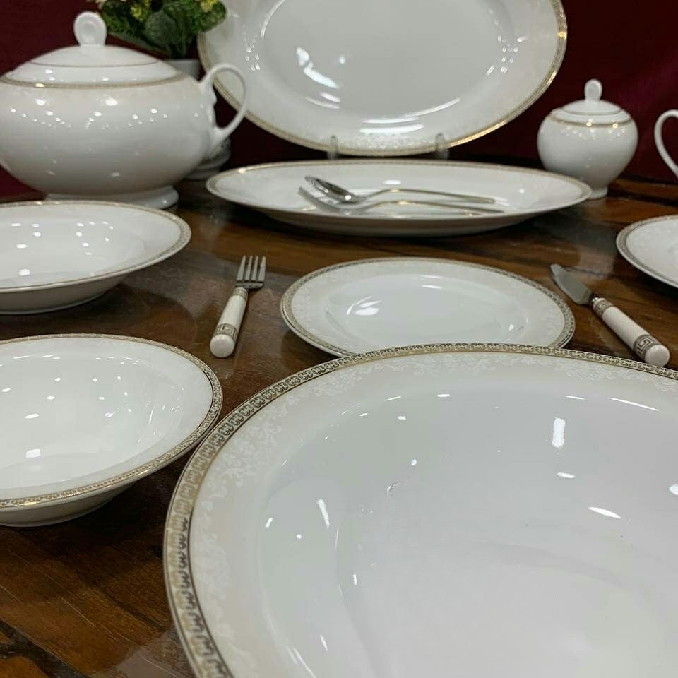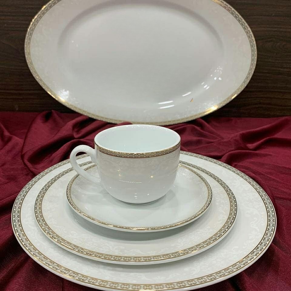 سرویس چینی 12 نفره زرین 102 پارچه طرح ریوا طلا درجه عالی مناسب برای جهیزیه. اقلام موجود در سرویس: سوپ خوری: 1 عدد دیس بیضی سایز 42: 1 عدد دیس بیضی سایز 38: 2 عدد پلوخوری: 18 عدد خورشت خوری: 12 عدد پیش دستی: 18 عدد سالاد خوری بزرگ: 1 عدد پیاله: 12 عدد نمک پاش: 3 عدد فلفل پاش: 2 عدد سماق پاش: 1 عدد قوری: 1 عدد قندان: 1 عدد فنجان: 12 عدد نعلبکی: 12 عدد شیرخوری: 2 عدد قابل شست و شو با ماشین ظرفشویی با ضمانت رنگ و لعاب. هزینه ارسال به عهده مشتری میباشد. ارسال دارم.