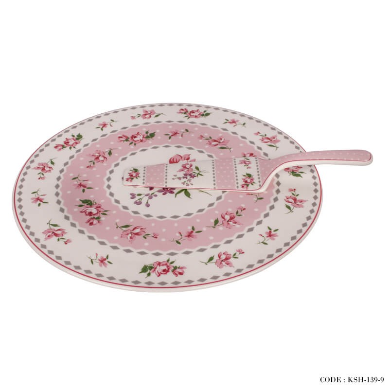 کیک خوری سرامیکی با کاردک مدل آنجلا صورتی مبلمونسرا مدل 293852