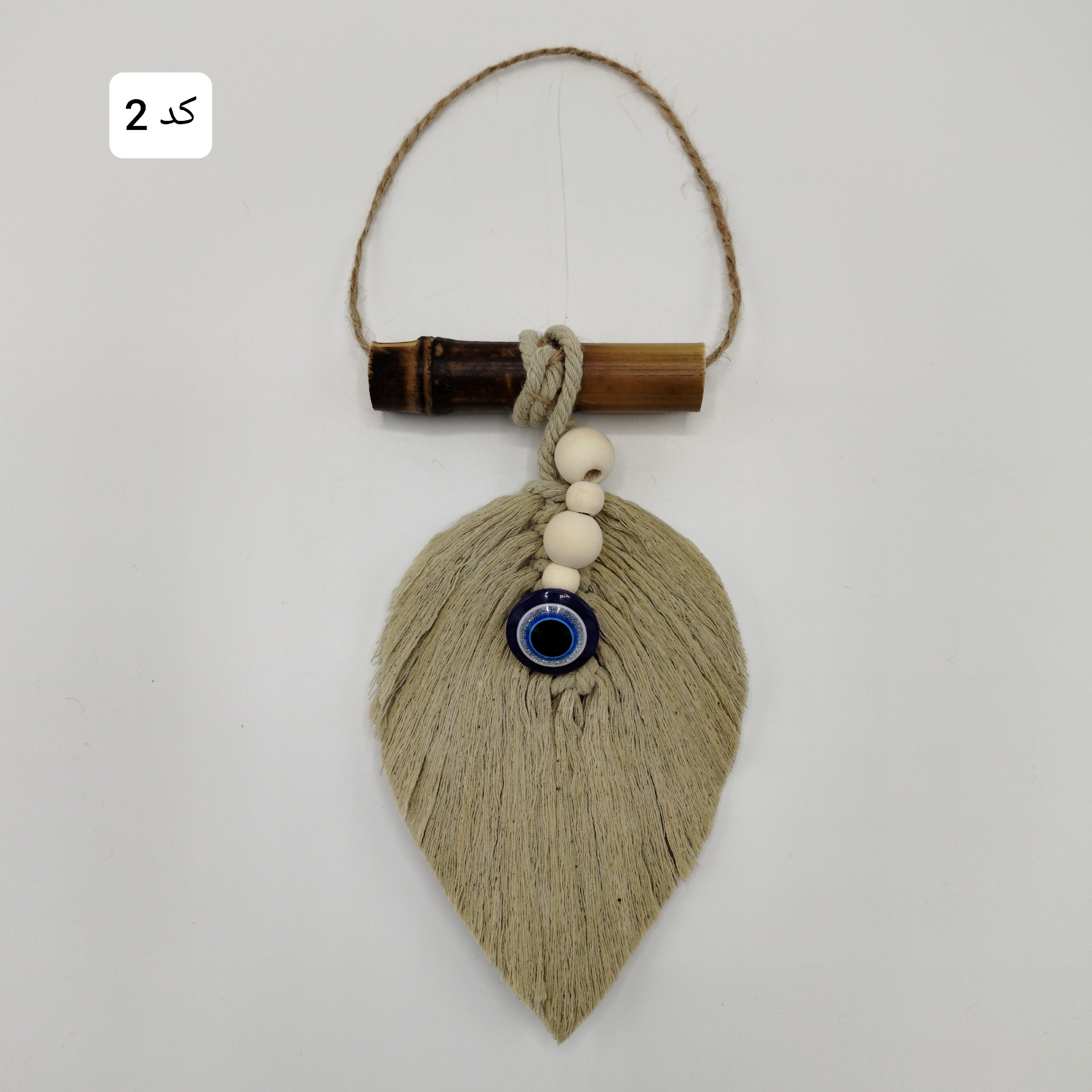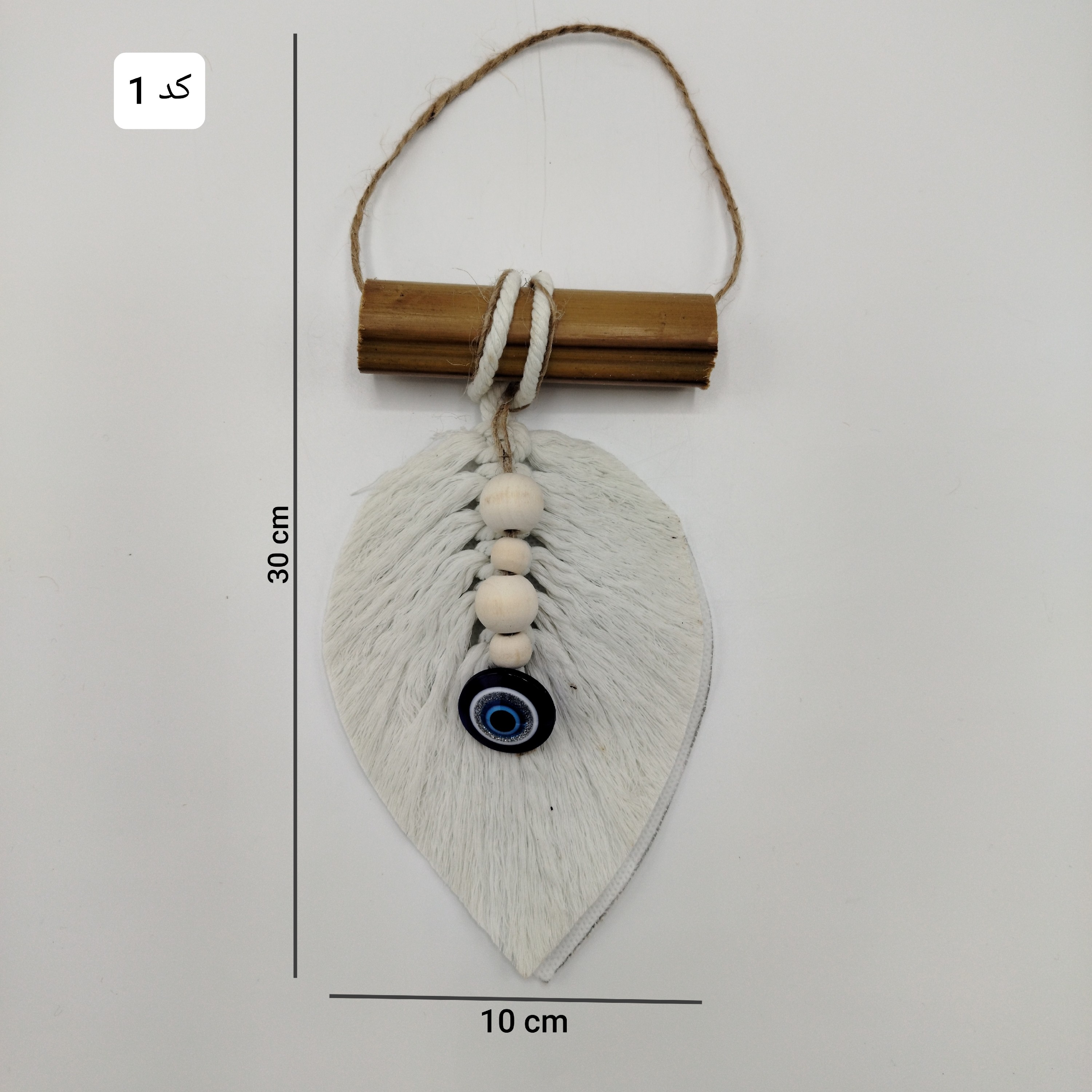آویز تزیینی مدل برگ مکرومه ی چشم نظر مناسب دکور و دیزاین و شلف موجود در 2 رنگ ابعاد محصول در تصویر درج شده است