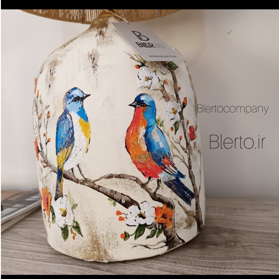 آباژور سفالی نقاشی دست مدل فانوسی بلند دو قناری مبلمونسرا مدل 230317