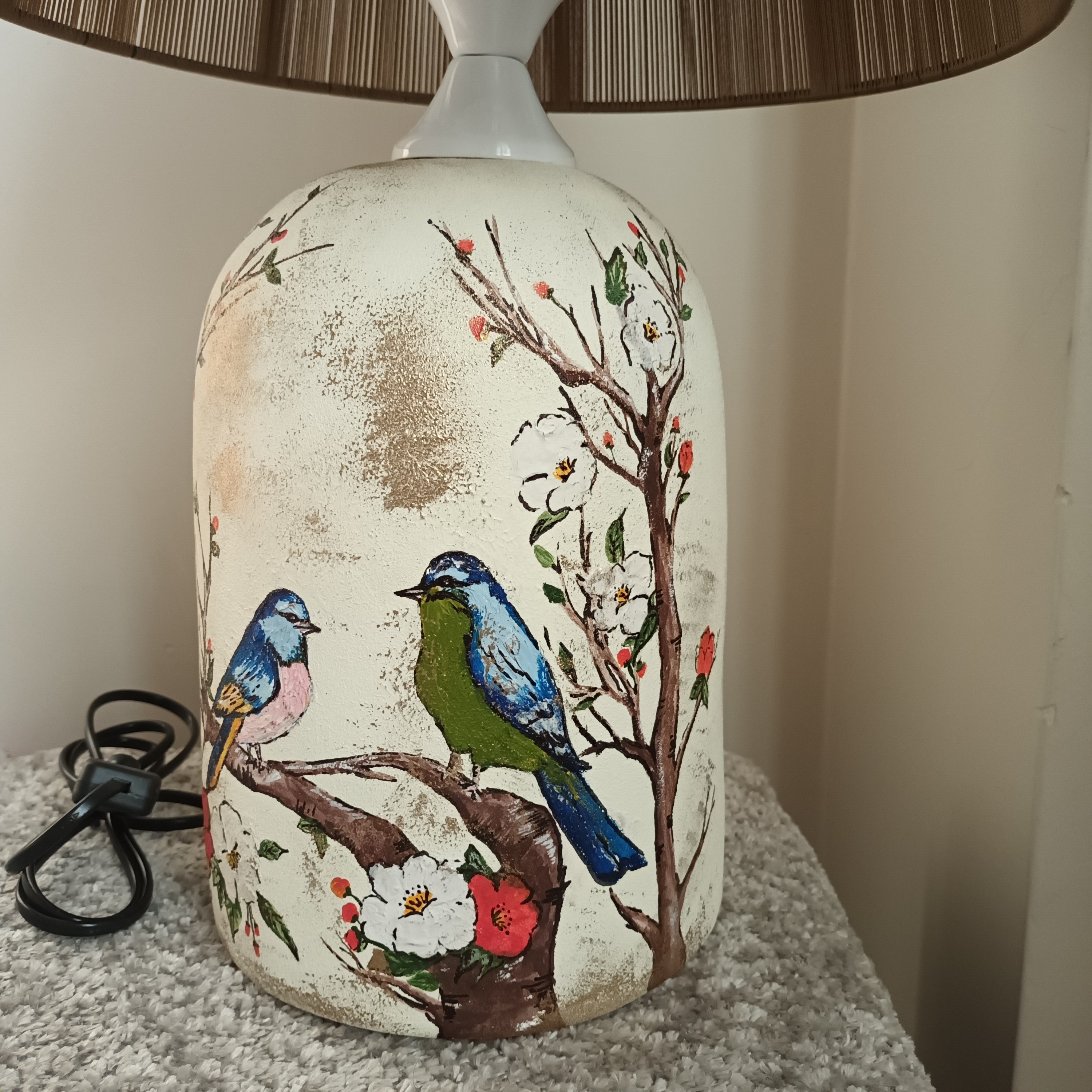 آباژور سفالی با نقاشی دست. که حس خوب هنر و روشنایی. باهم تلفیق شده. و حس ناب هنری. و آرامش رو به فضای شما هدیه میده . نقاشی دو قناری همونطور که در عکس ها میبیند بر حسب سلیقه مشتری ها قناری ها رنگشون تغییر کرده ، تو چت میتونید با ما در تماس باشید و مشخص کنید کدوم رنگبندی رو میخواین ، نقاشی دلخواه هم میتونید سفارش بدین