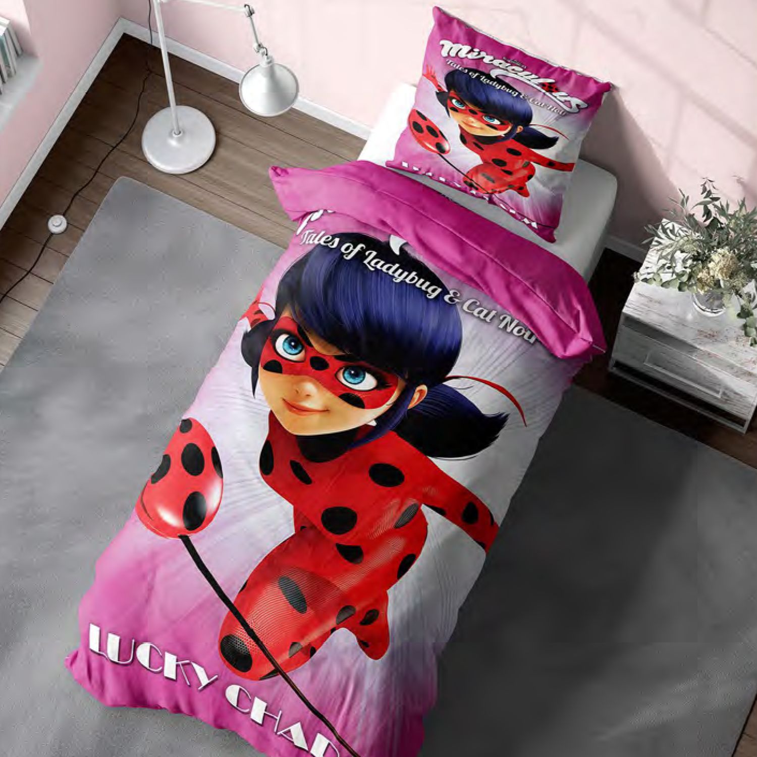 سرویس خواب دخترانه کد M-8401 طرح دختر کفشدوزکی یکنفره 4 تکه مبلمونسرا مدل 227714