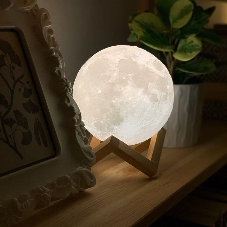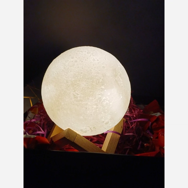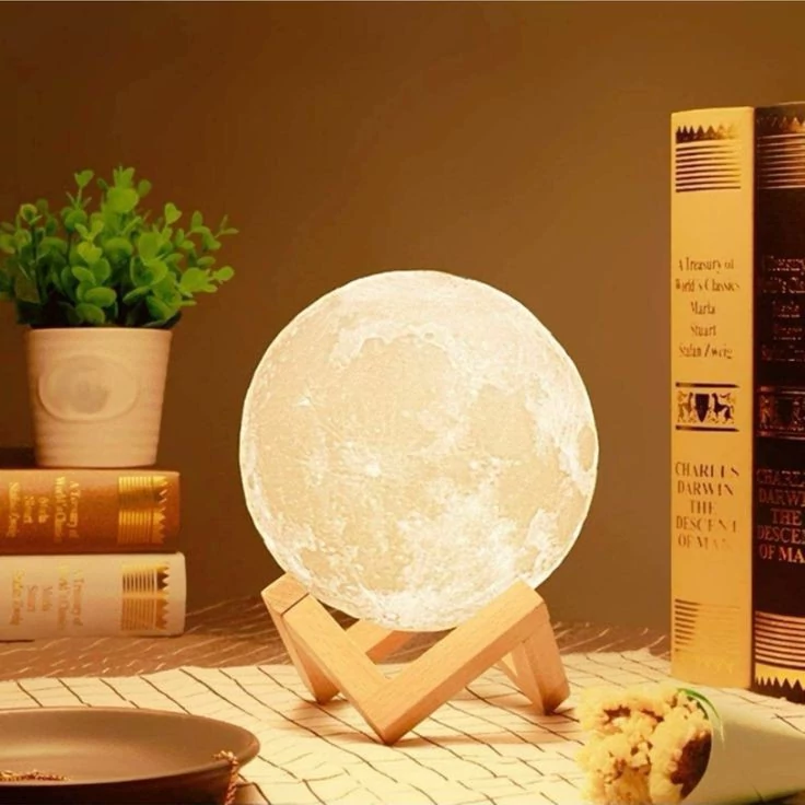 🌈شب خواب ماه هم دکوری وهم چراغ خواب که اتاق تو زیباترمیکنه دارای استند چوبی 7 تم رنگی داره که رنگش عوض میشه سطحش مثل ماه ناهمواره قطر کره ماه 14 سانت با پایه 17 سانت دارای کابل شارژ دارای دفترچه راهنما