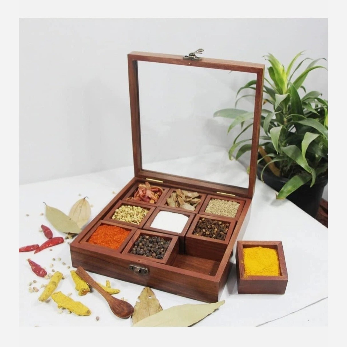جا ادویه ای 9 خانه الیسا ساخته شده از چوب راش سوپر. و شیشه با پوشش رنگ پولی اورتان. و رنگ گردویی این محصول دارای 9 جعبه کوچک. متحرک برای ادویه جات دارد که داخل یک باکس بزرگتر قرار میگیرد که این باکس دارای یک درب شیشه ای میباشد برای محافظت وممانعت از ورود گردوغبار به داخل باکس میشود این محصول بسیار با کیفیت و کاربردی. رنگ ثابت دارد حتی بر اثر ضربه وگذر زمان.