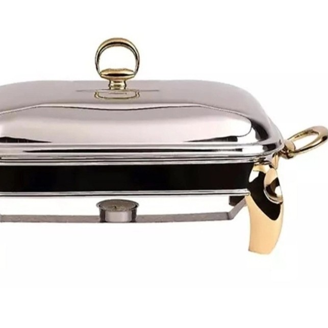 سوفله مستطیل متوسط ام جی اس مدل 3102 یک سوفلهخوری 3 پارچه است که دارای بدنهای از استیل ضدزنگ و یک ظرف داخلی پیرکس است. ابعاد کلی این سوفلهخوری 48 × 25 × 16 سانتیمتر و وزن آن 3400 گرم است و شامل یک ظرف پیرکس، درپوش و پایه وارمر برای گرم نگه داشتن غذا میشود. مشخصات کلی: برند: ام جی اس مدل: 3102 نوع محصول: سوفلهخوری شکل: مستطیل اندازه: متوسط تعداد پارچه: 3 پارچه وزن: 3400 گرم ابعاد کلی: 48 × 25 × 16 سانتیمتر ویژگیها: جنس بدنه: استیل ضد زنگ جنس ظرف داخلی: پیرکس شامل: ظرف پیرکس داخلی، درپوش و جای وارمر سطح: گود رنگ: طلایی
