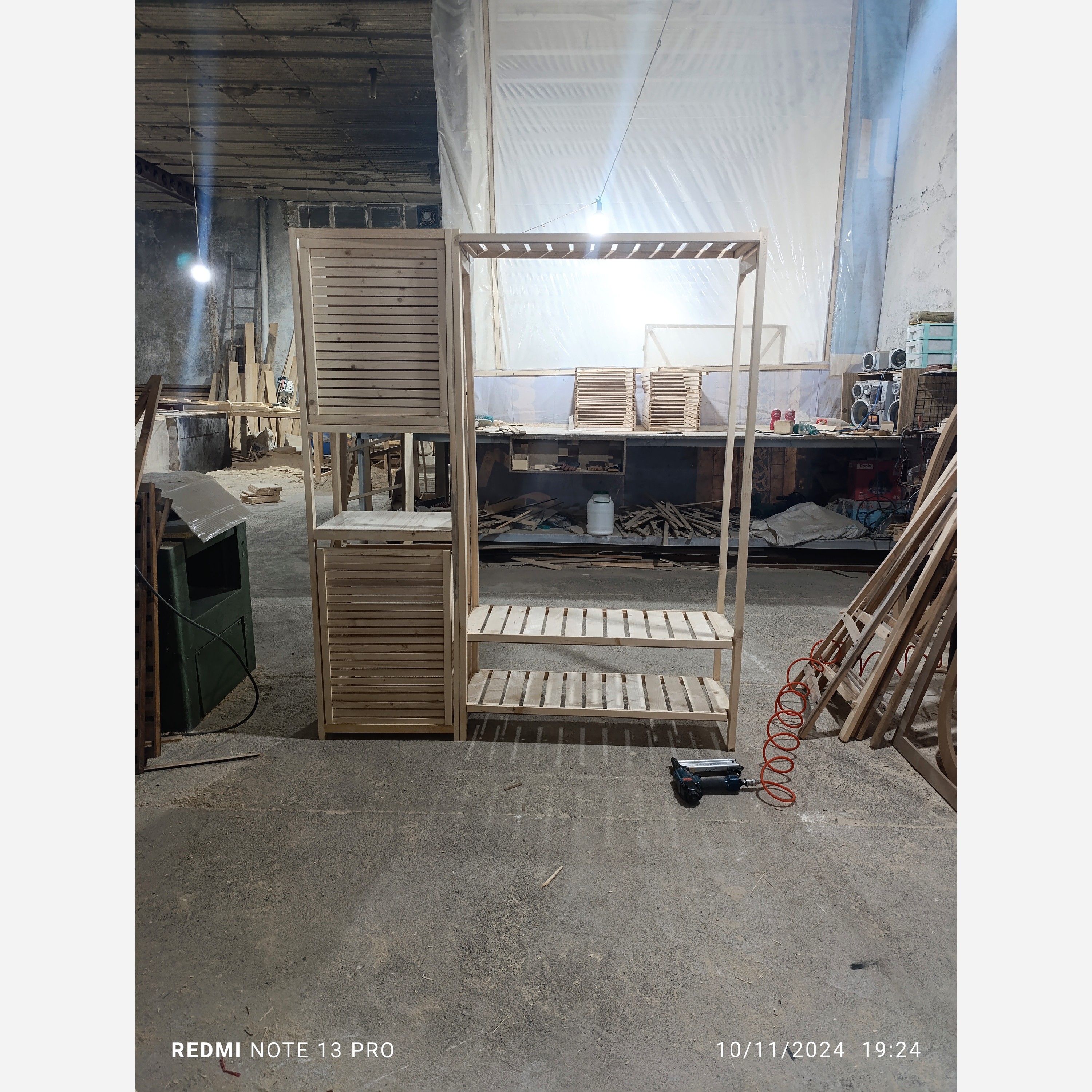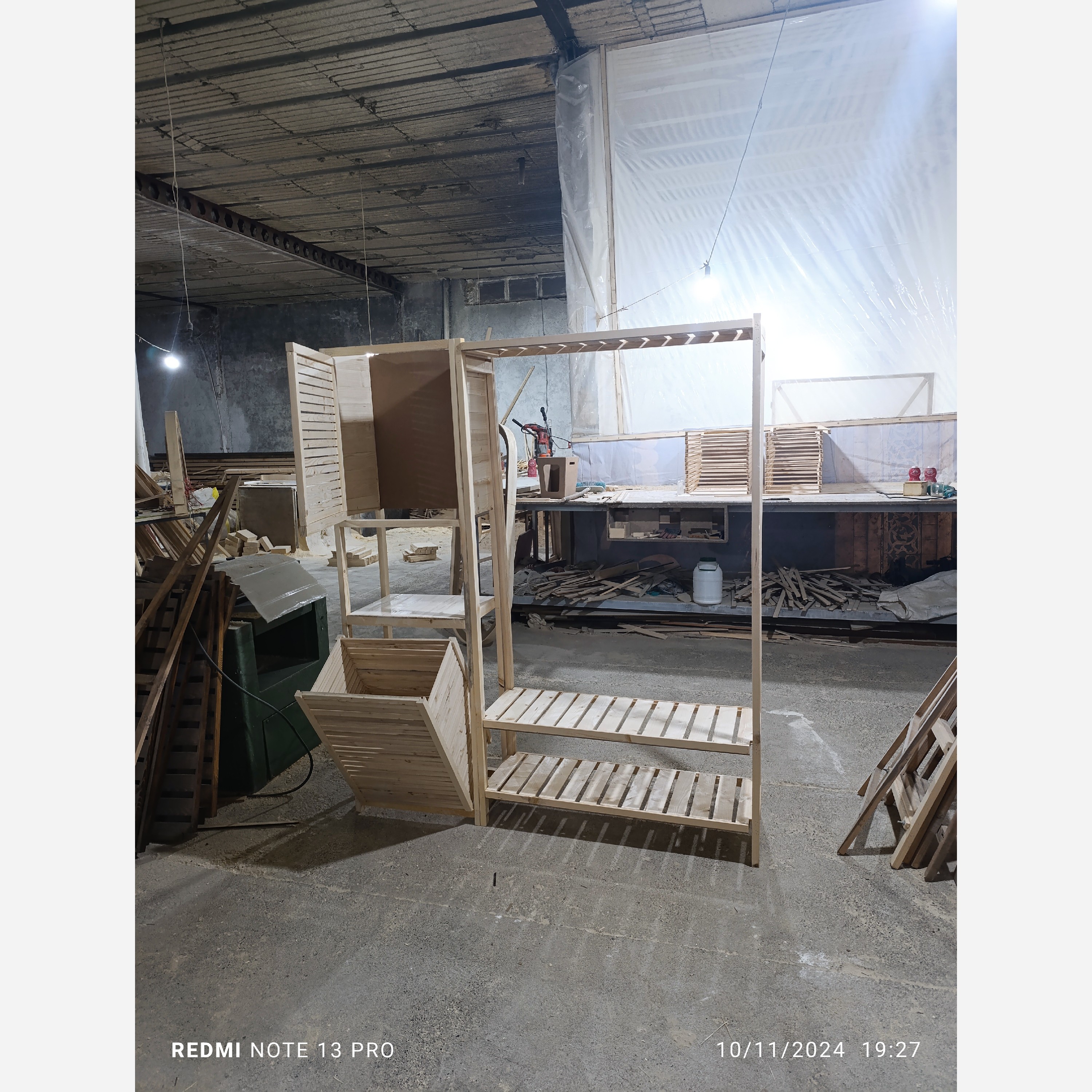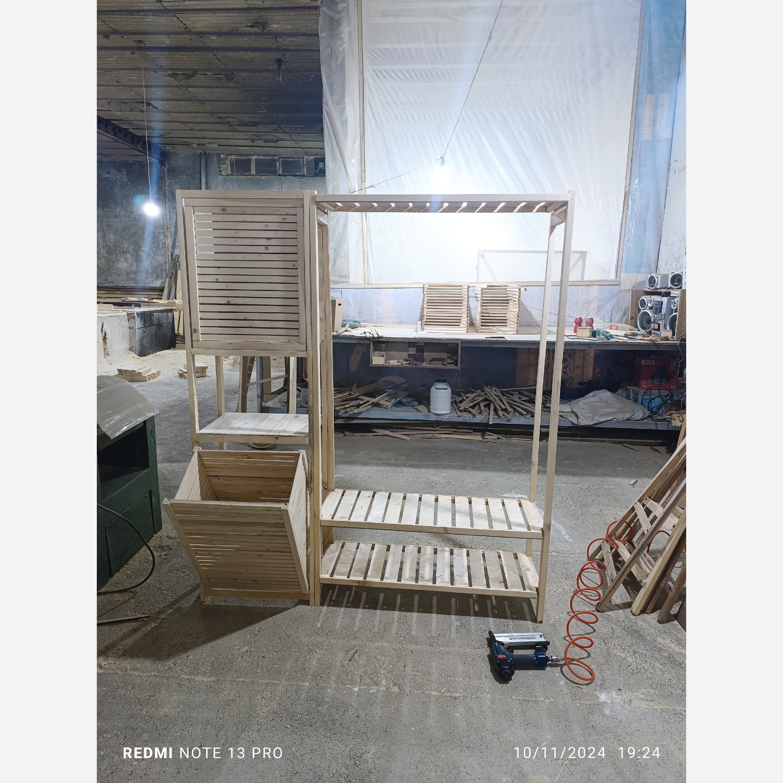 رگال لباس باکس دار کم نظیر و زیبا تلفیق رگال لباس باکس رخت چرک و کمد طبقاتی تولید شده از چوب روسی درجه یک محصولی چند منظوره خرید مستقیم از تولید کننده در سه رنگ قهوه ای تیره قهوه ای روشن رنگ چوب