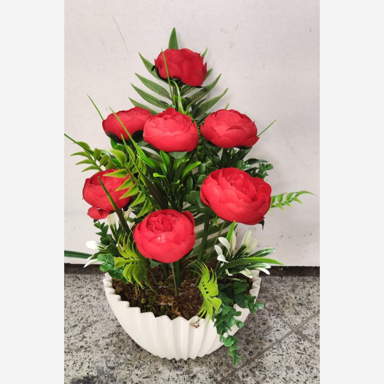 گلدون گل پیونی درشت 9 گل مصنوعی گلدون پلاستیکی در4 رنگبندی زیبایه گلدون رومیزی آماده و تزئین شده زیبا مبلمونسرا مدل 258845