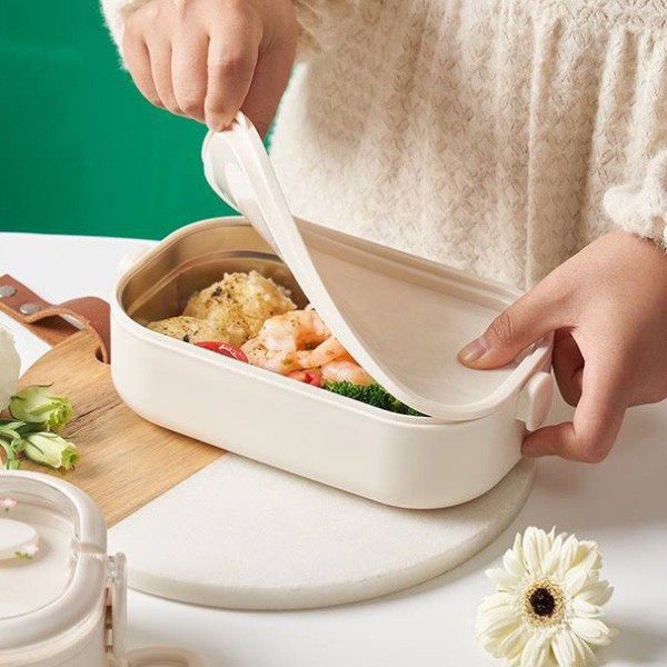 لطفا قبل از سفارش محصول موجودی را با غرفه دار چک کنید. لانچ باکس تک خانه استیل قاشق چنگال دار طرح Simple همراه با قاشق و چنگال ابعاد:21*13*8 سانتی متر