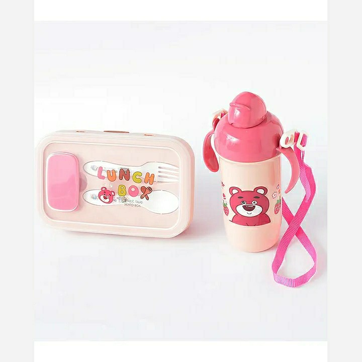 ست ظرف غذا و قمقمه پینترستی صورتی ست قمقمه و لانچ باکس همراه با قاشق و چنگال کودک مبلمونسرا مدل 293140