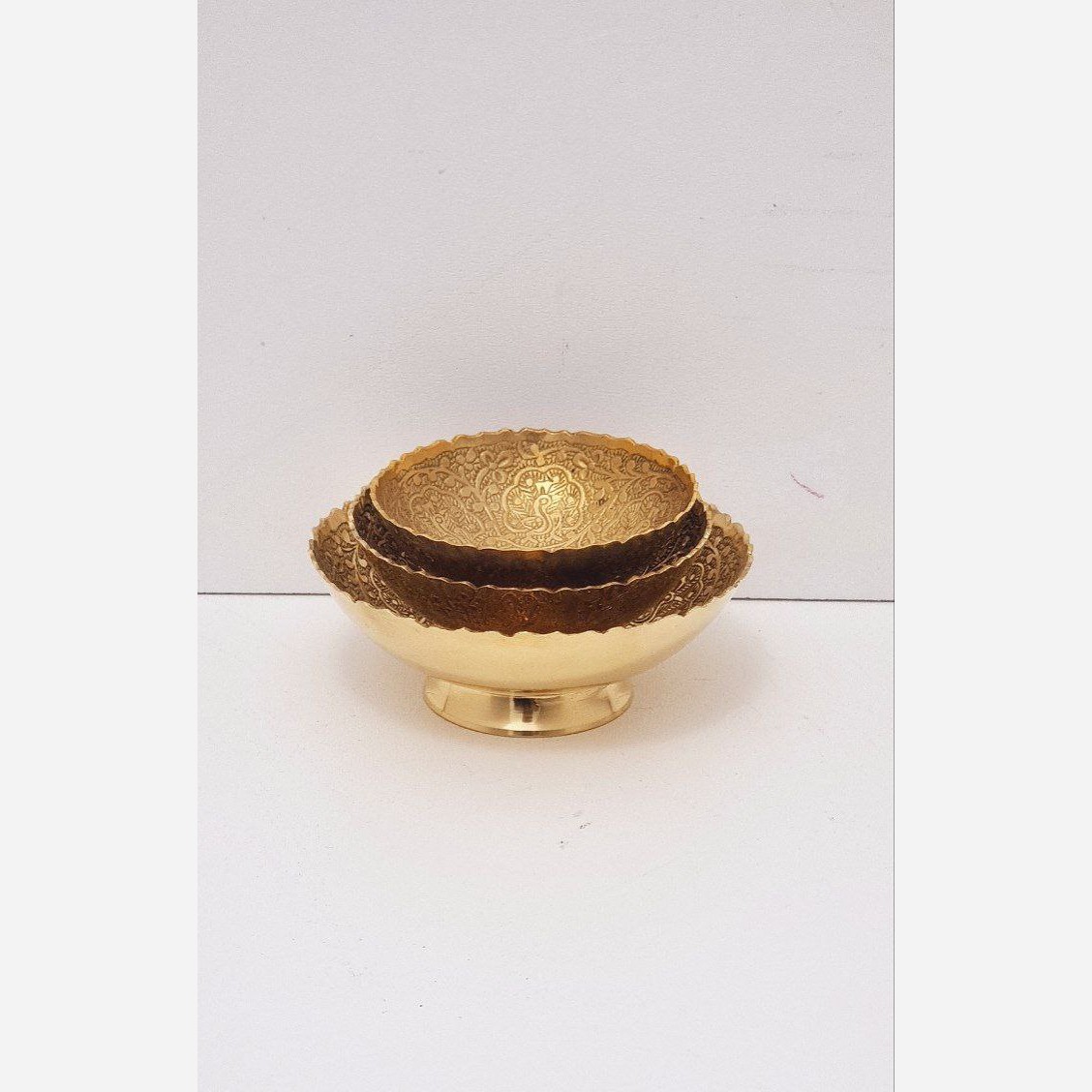 ست 3 تایی تنقلات خوری جنس برنجی تولید هند در3 سایز12. 10. 9سانت قابل استفاده