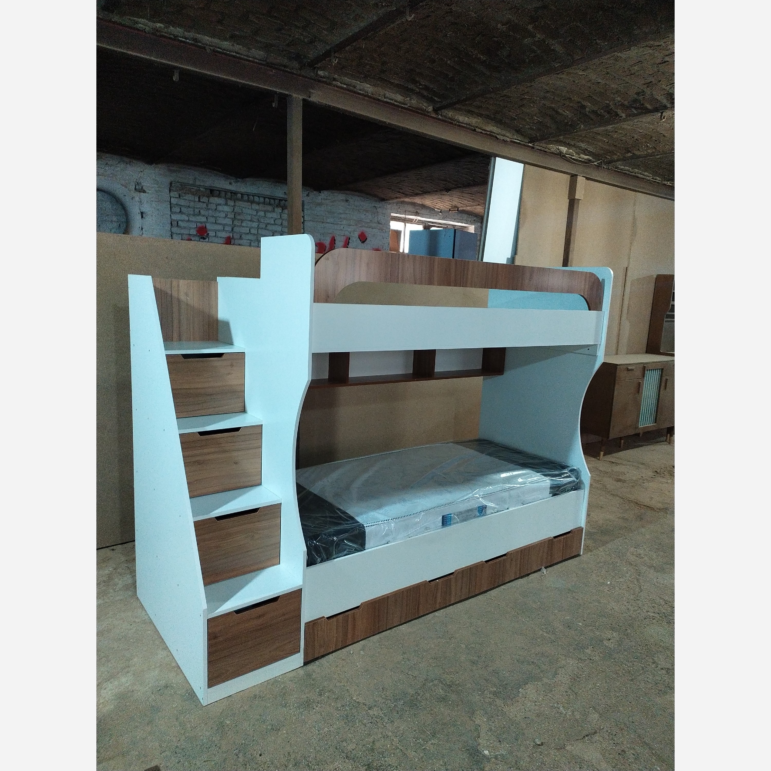 بخاطر قیمت پایین،هزینه حمل و بسته بندی به عهده مشتری عزیز می باشد ابعادکل250×95 فضای تشک 90×200 کامل لترون پویا کشو زیر تخت،کتابخانه زیر تخت بالا پله ها به صورت باکس بزرگ و جادار