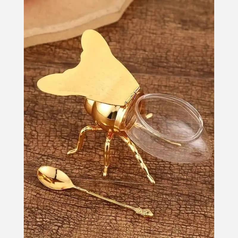 ظرف سرو و پذیرایی با طراحی زنبور عسل مناسب نگهداری عسل در دو رنگ طلایی و نقره ای رنگ : طلایی | نقره ای ظرف عسل همراه با قاشق ابعاد: 14 در 9/5 سانت از جنس استیل قابل شستشو در ماشین ظرفشویی