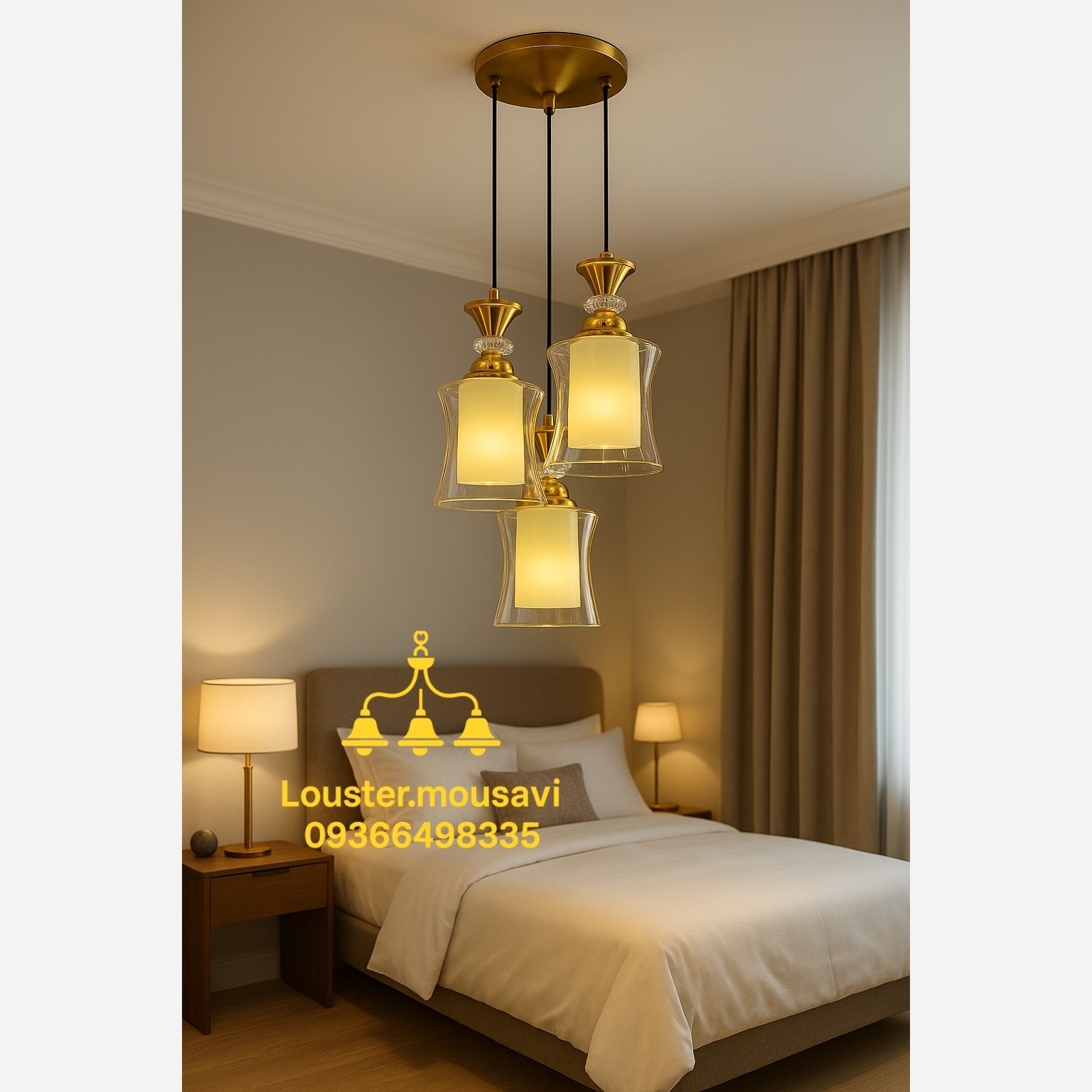 لوستر سه شعله اتاق خواب و آشپزخانه لامپ معمولی میخوره و هر نوع لامپی بخواین میتونین قرار بدین. به صورت سه شعله و تک شعله فروش داریم
