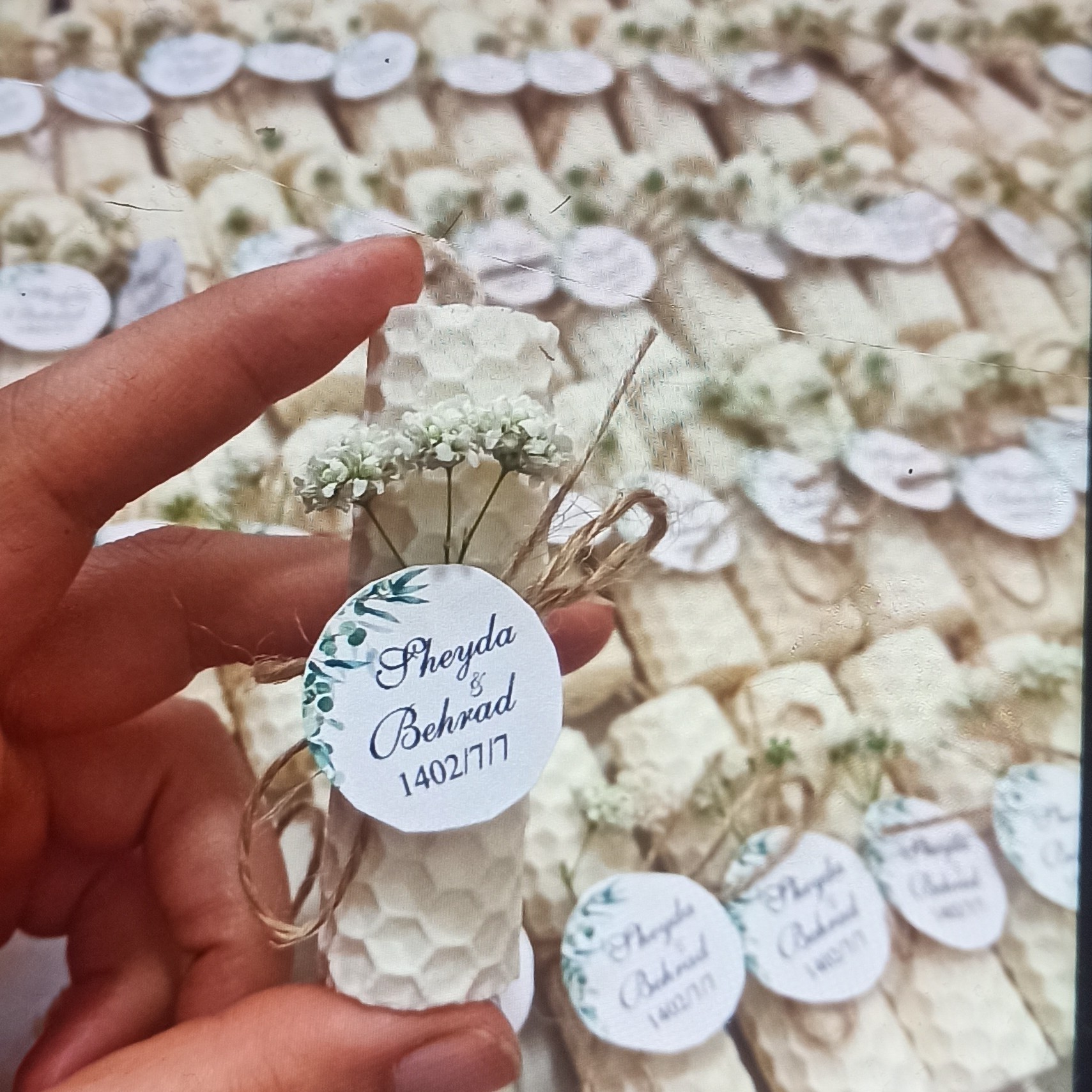 گیفت شمع موم عسلی انتخاب مناسبی برای مراسم های شماست و برای سفارشات بالای 20 عدد تگ اسم شما هم طراحی و چاپ میشه 🌷