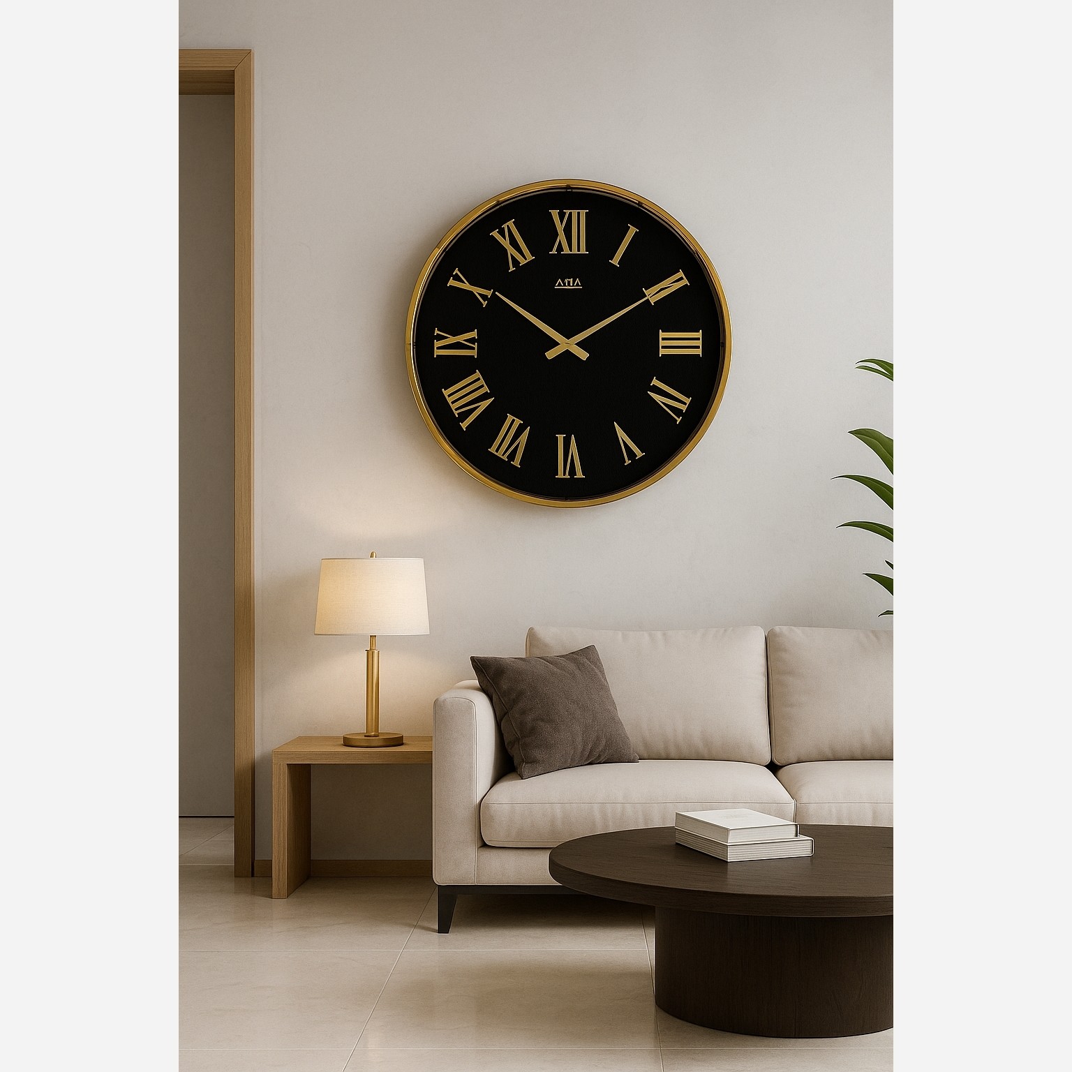 ساعت دیواری فلزی چرمی طلایی مشکی آبکاری دورینگ مبلمونسرا مدل 238238