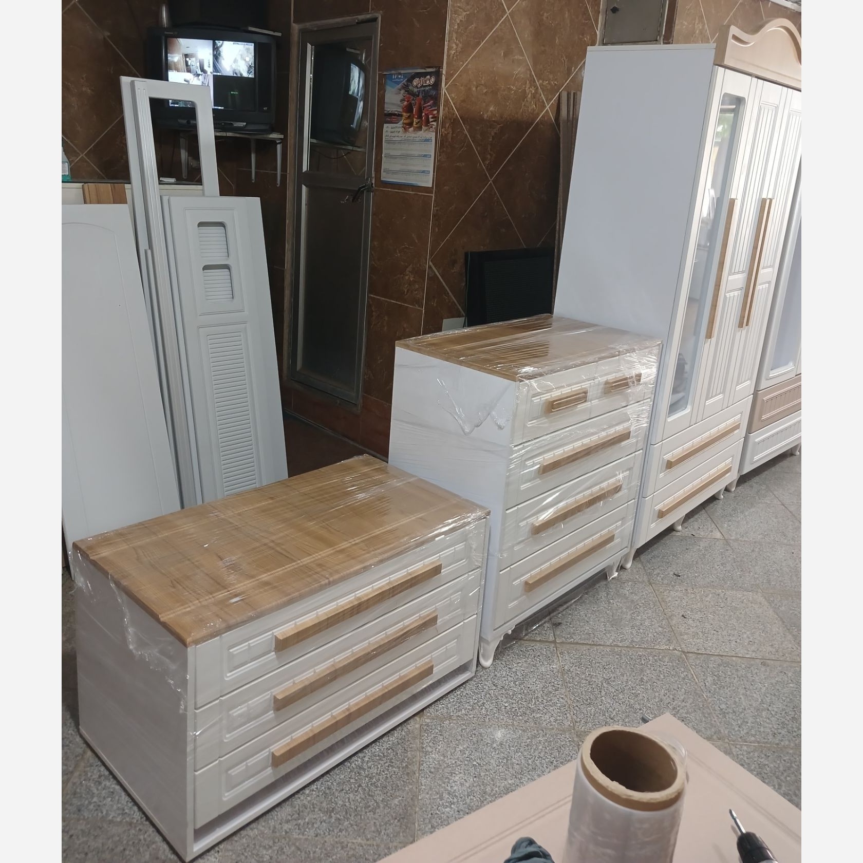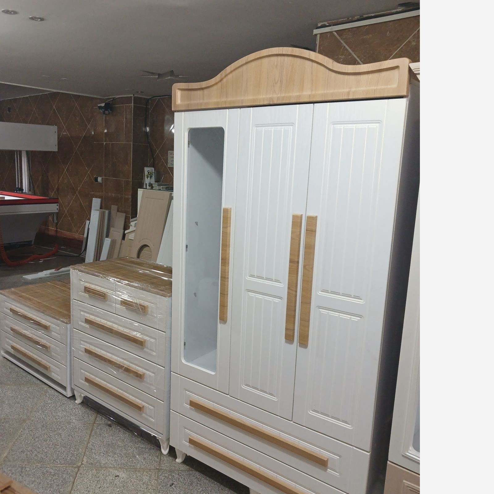 کمد سه درب کریستال با روکش وکیوم و ام دی اف ممبران و بدنه ملامینه ضد خش پویا تخت دو منظوره کودک و نوجوان و دراور چهارکشو