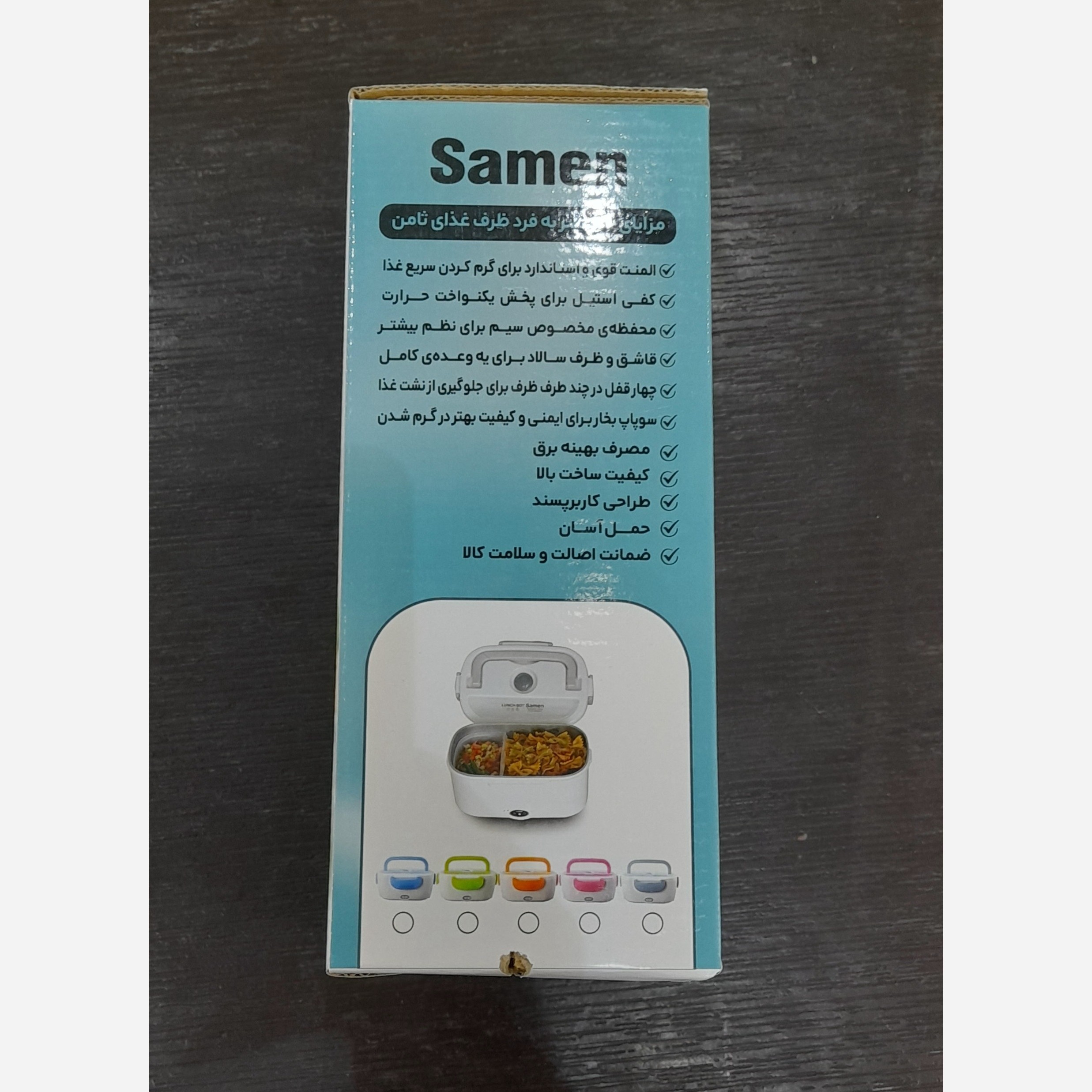 ظرف غذا دانشجویی و دانش آموزی ثامن که از جنس پلیپروپیلن بوده و ابعاد 9 در 15/5 در 21/5 سانتیمتر دارد. ویژگی جالبی که دارد تقسیم بندی برای جدا سازی برنج، خورشت، سالاد، ماست، پیش غذا و… است، در واقع دو قسمتی بوده و میتوانید هرگاه به آن نیاز نداشتید به یک قسمت تغییرش بدید. ظرف غذا برقی مدل داخل استیل مدل جدید ظروف غذای حرارتی است که در زمان کمی غذا را به خوبی گرم می کند و طعم لذیذ غذای تازه را برای شما به ارمغان می آورد. این محصول برای کارمندان، دانشجویان و افرادی که شاغل هستند بسیار کاربردی است و در مدت زمان کوتاهی به راحتی غذا را گرم می کند. تفاوت اصلی آن با مدلهای دیگر در محفظه داخلی استیل قابل جدا سازی اش می باشد که به راحتی می توانید آن را شستشو دهید بدون آنکه بدنه اصلی را در زیر آب بگیرید.برای اینکه غذای شما بهتر و سریعتر گرم شود ابتدا مقدار کمی آب داخل ظرف بریزید و سپس غذای خود را برای گرم کردن داخل ظرف ریخته و بعد از آن درب ظرف را بسته و به برق بزنید در هنگام گرم شدن از باز و بسته کردن درب ظرف خودداری کنید معمولا بسته به دمای غذا بین 30 الی 45 دقیقه غذای شما گرم خواهد شد. اگر هم غذا داخل ظرف بود کافیست کمی اب را روی برنج بریزید در هر دو صورت اضافه کردن آب باعث میشود غذا بهتر گرم شود کف استیل ضدزنگ 304: رسانای عالی برای انتقال حرارت یکنواخت و حفظ کیفیت طعم غذا. ظرف داخلی دوقسمتی جداشونده: مناسب برای تفکیک برنج، خورشت یا سالاد – از جنس پلاستیک فودگرید بیبو و مقاوم. گرمایش با المنت حرارتی قوی: گرمشدن یکنواخت در مدت 15–20 دقیقه؛ بدون خشککردن یا سوزاندن غذا. درب قفلدار ایمن با واشر سیلیکونی: جلوگیری از نشت مایع یا بخار در حین حمل. دستگیرههای جانبی مقاوم در برابر حرارت: برای جابهجایی آسان بدون خطر سوختگی. ورودی برق 220V با کابل جداشونده: مصرف انرژی پایین و ایمنی بالا. دارای سوپاپ تخلیه بخار: جلوگیری از جمعشدن رطوبت و خیس شدن غذاها. تمیزکردن آسان: قطعات قابل جداسازی و قابل شستوشو با دست یا ماشین ظرفشویی. مزایا غذای گرم، تازه و آماده مصرف در هر مکان بدون نیاز به اجاق. جداسازی آسان ظروف برای شستوشو و نظافت روزانه. طراحی سبک، زیبا و مناسب استفاده اداری یا مسافرتی. جنس باکیفیت ایرانی با دوام بالا و المنت مطمئن. جایگزین عالی برای ظروف حرارتی و ترموسهای سنگین. نکات استفاده المنت مستقیماً با آب تماس نگیرد. هنگام قرار دادن در برق، درب را بسته نگه دارید تا حرارت بهتر پخش شود. پس از هر بار استفاده، ظرف استیل را حتماً خشک کنید. مناسب برای غذاهای پختهشده . جنس بدنه : پلاستیک مقاوم ABS جنس کف داخلی : استیل 304 ضدزنگ زمان گرم شدن : 15 تا 20 دقیقه کابل برق : جداشونده با طول استاندارد 80cm ابعاد تقریبی : 23 × 17 × 10 سانتیمتر وزن : حدود 700 گرم