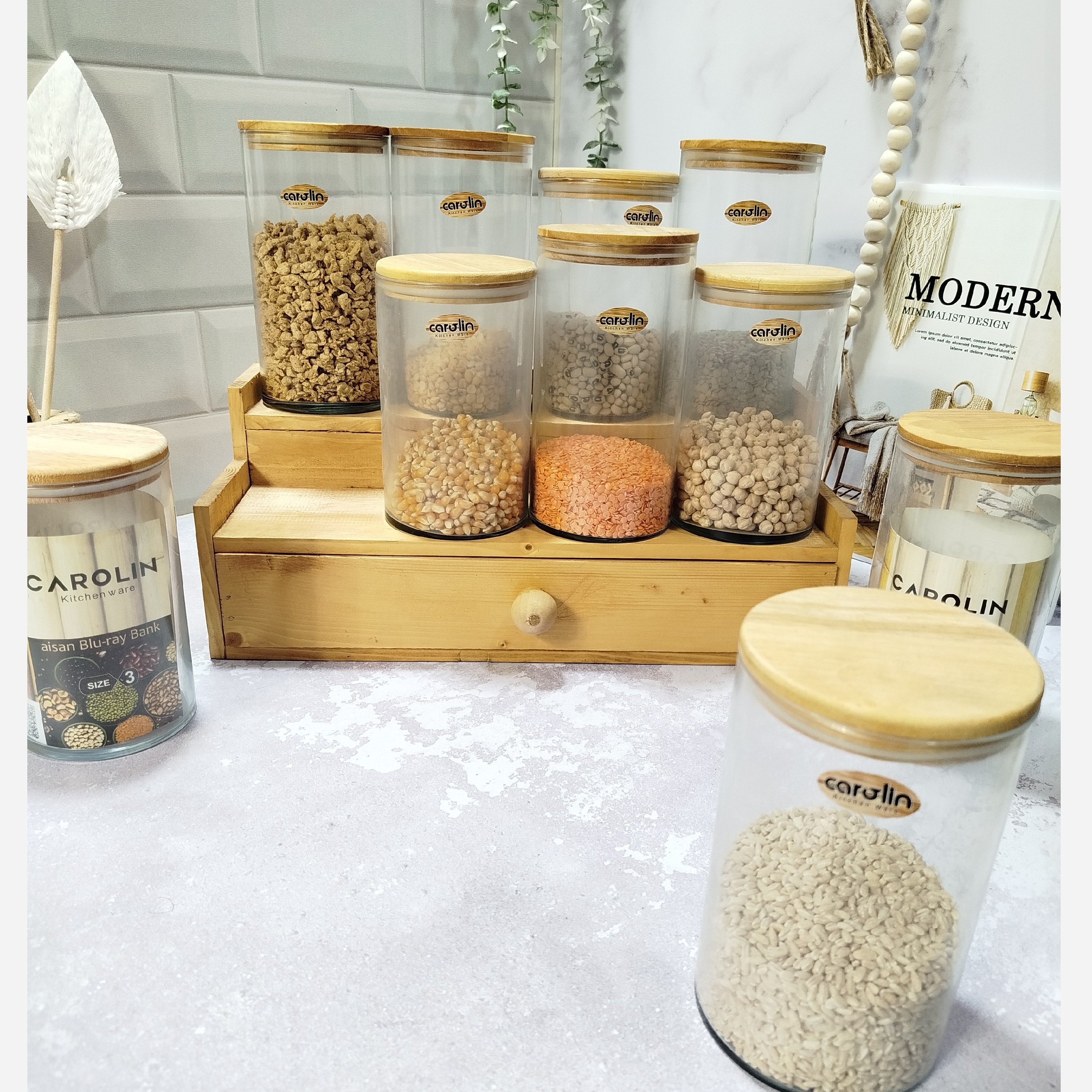 موجود در 5 سایز مناسب ادویه و حبوبات متریال شیشه و بامبو