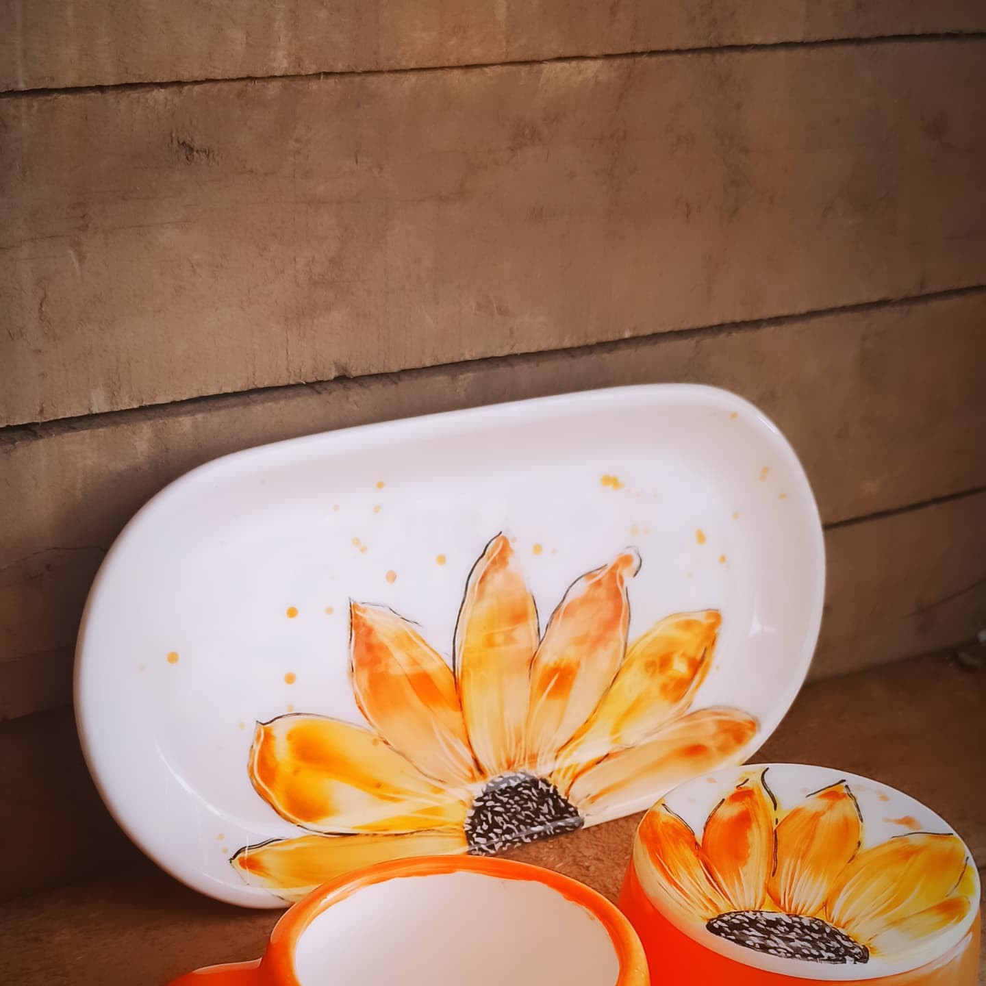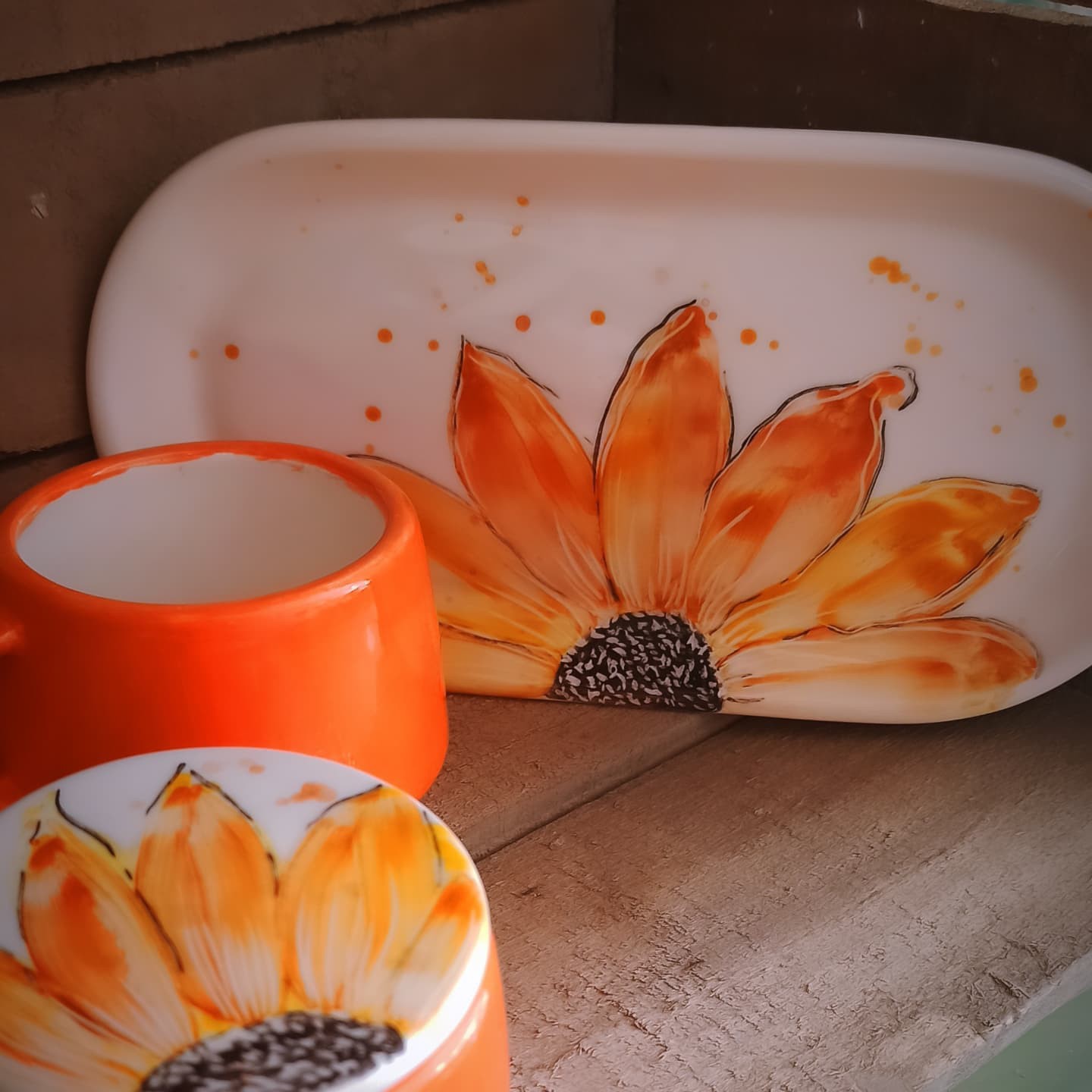 ست چایخوری طرح افتابگردون، سرامیکی ، رنگ و لعاب بسیار زیبا باکیفیت،