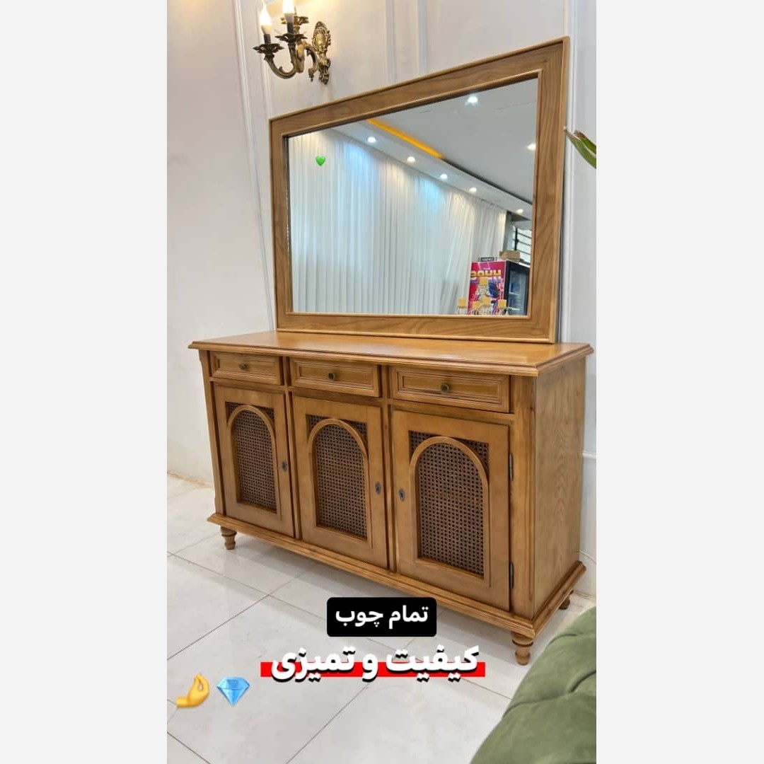 اینه چوبی تمام راش با منبت های ریز و شیک و دلپسند مناسب پذیرایی و سلیقه های خاص با این اینه محیط پذیرایی ات بزرگ و دلنشین دیده میشه شمعدان بغل اینه هم موجوده